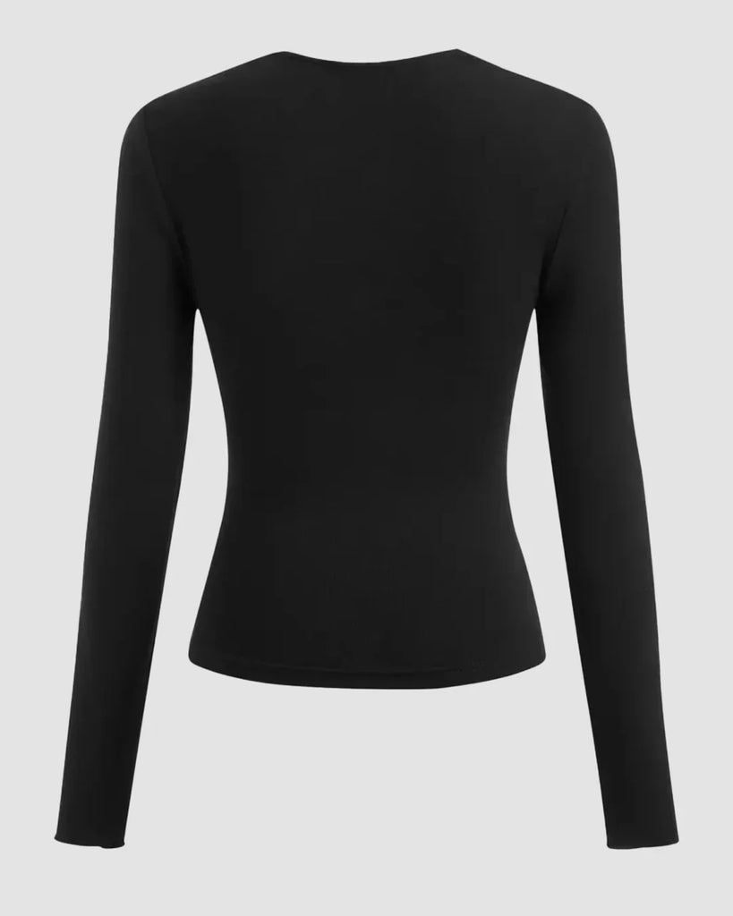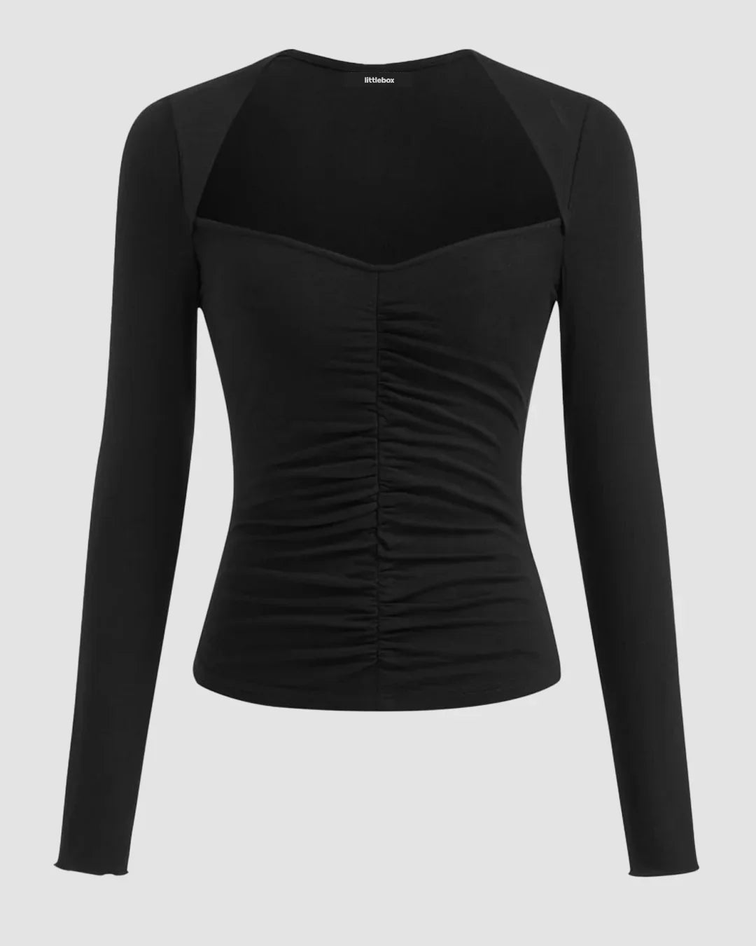 Ruched Sweetheart Neck Full Sleeve Top in Black