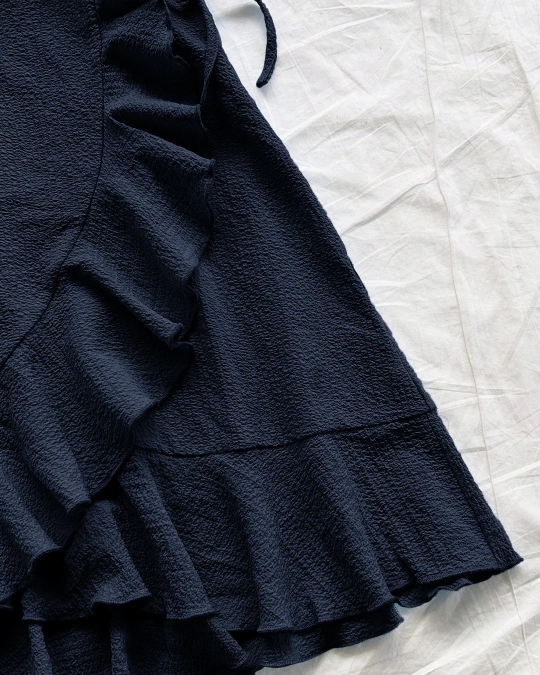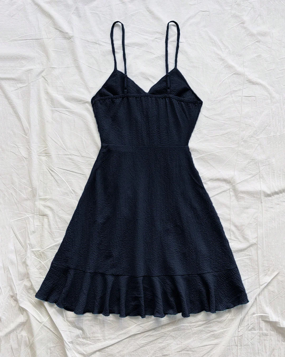 Ruffled Wrap Spaghetti Strap Dress in Navy Blue