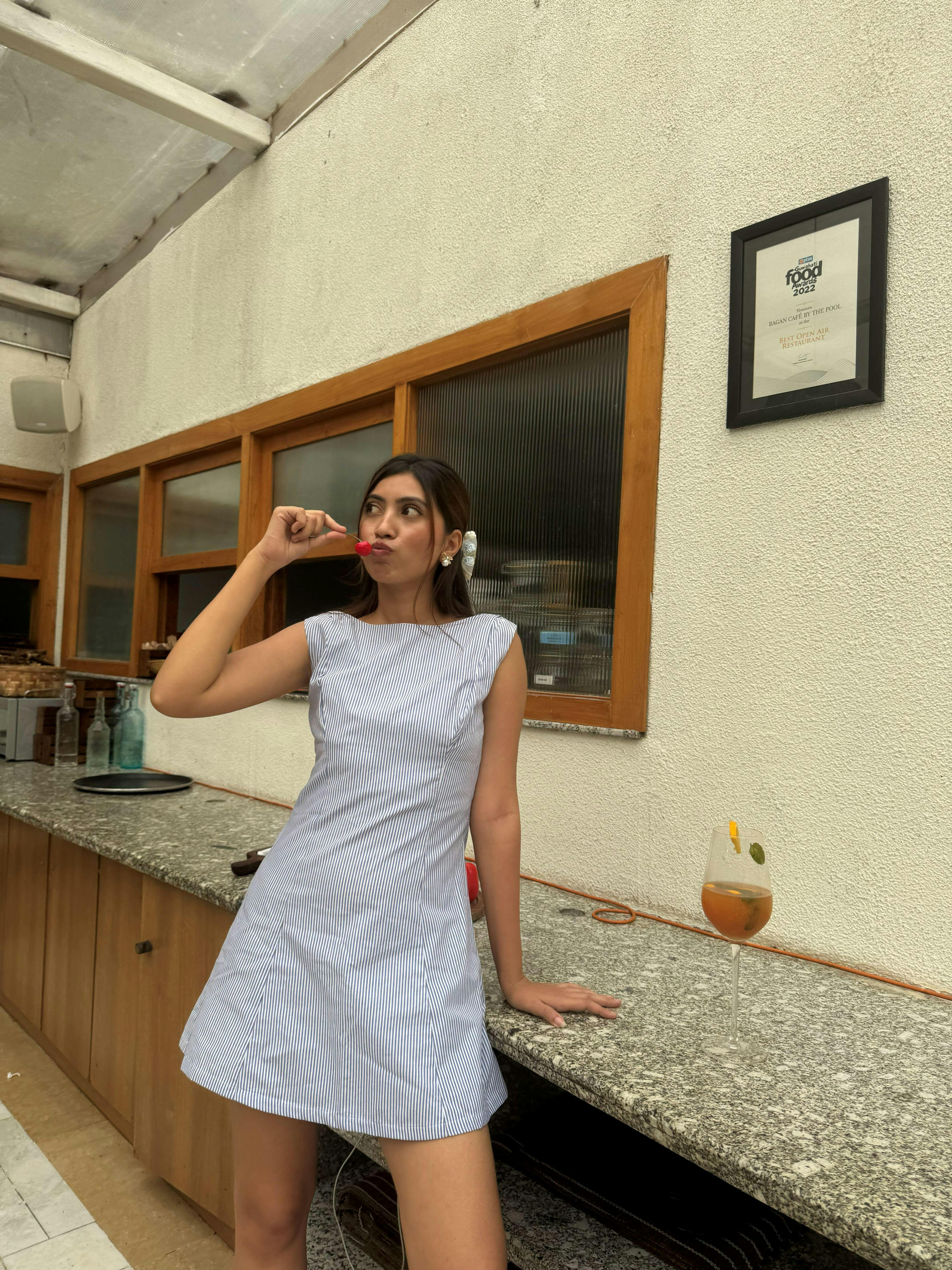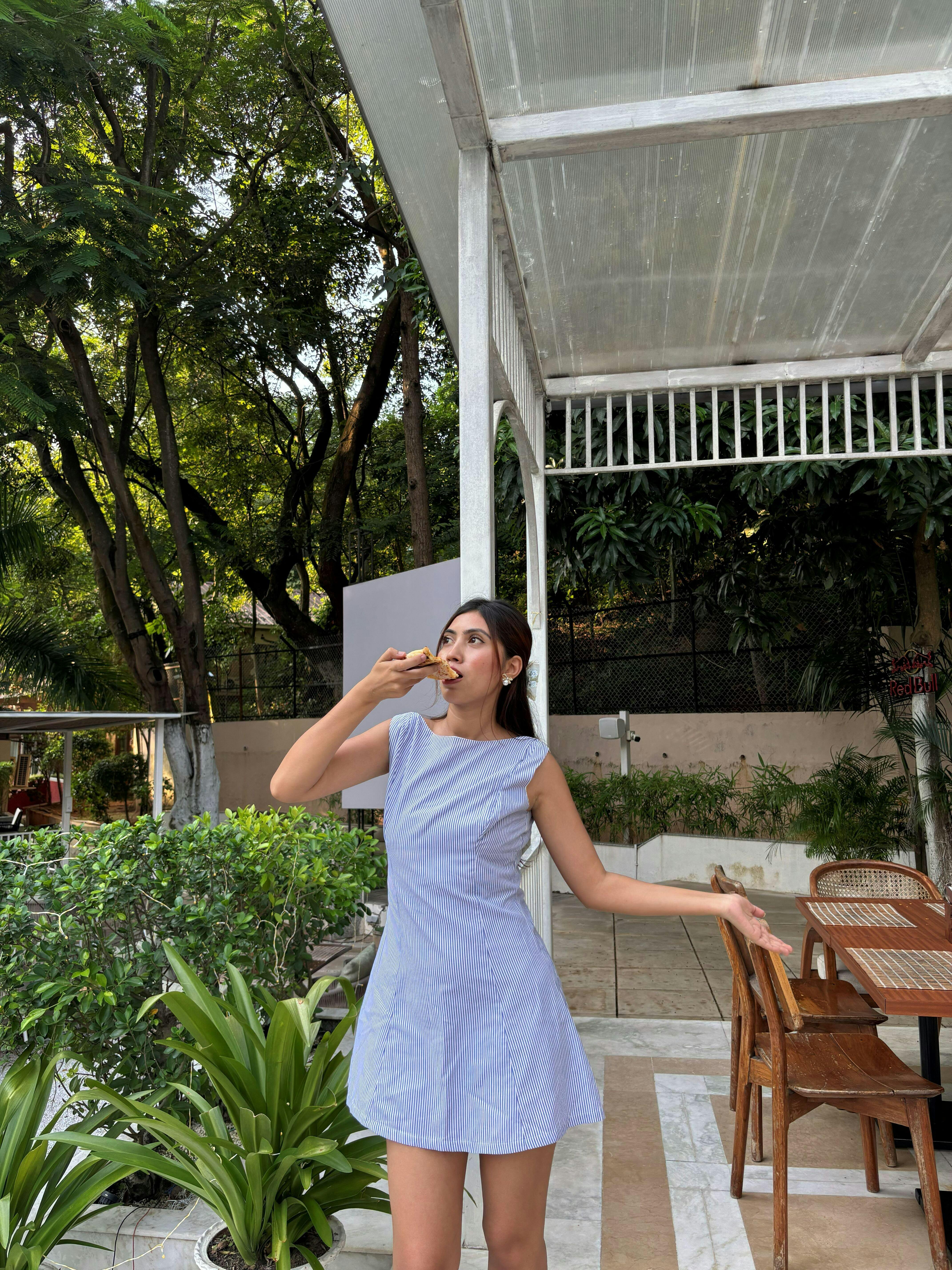 Sleeveless Blue Striped Bodycon Mini Dress for Women