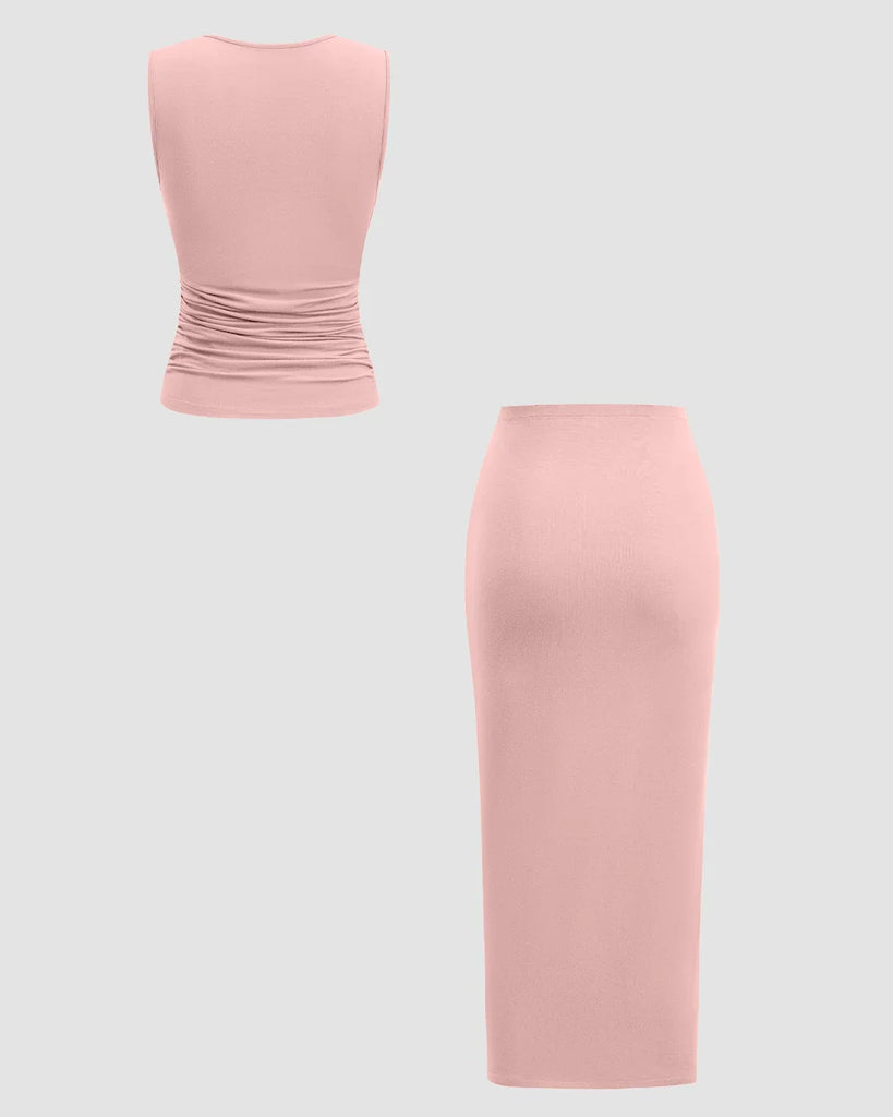 Sleeveless Ruched Top & Midi Skirt Set in Rose