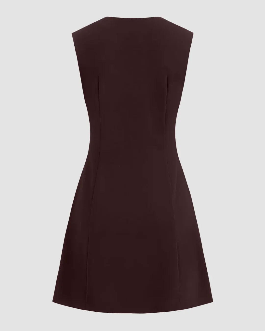 Zip Front Sleeveless A-Line Mini Dress in Chocolate Fondae