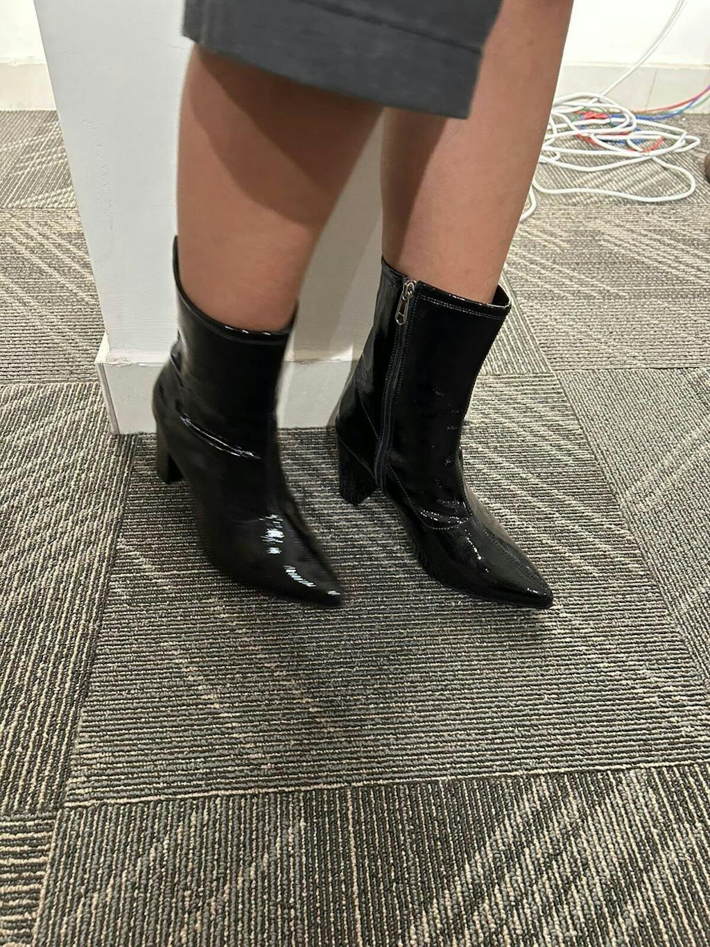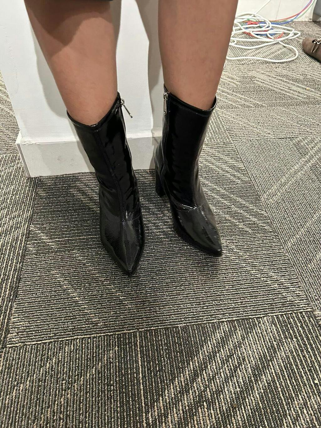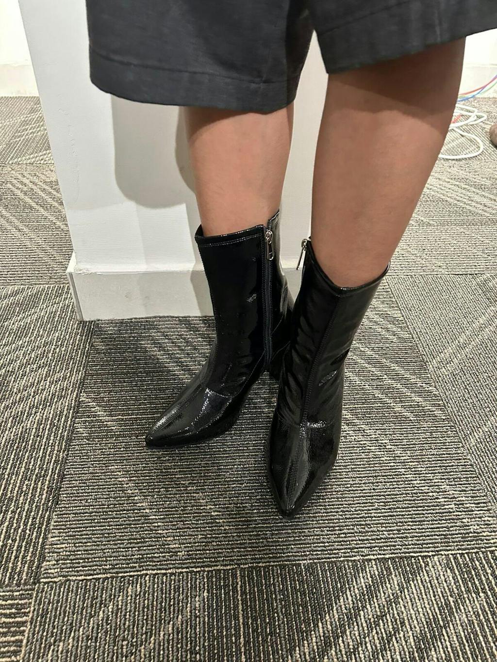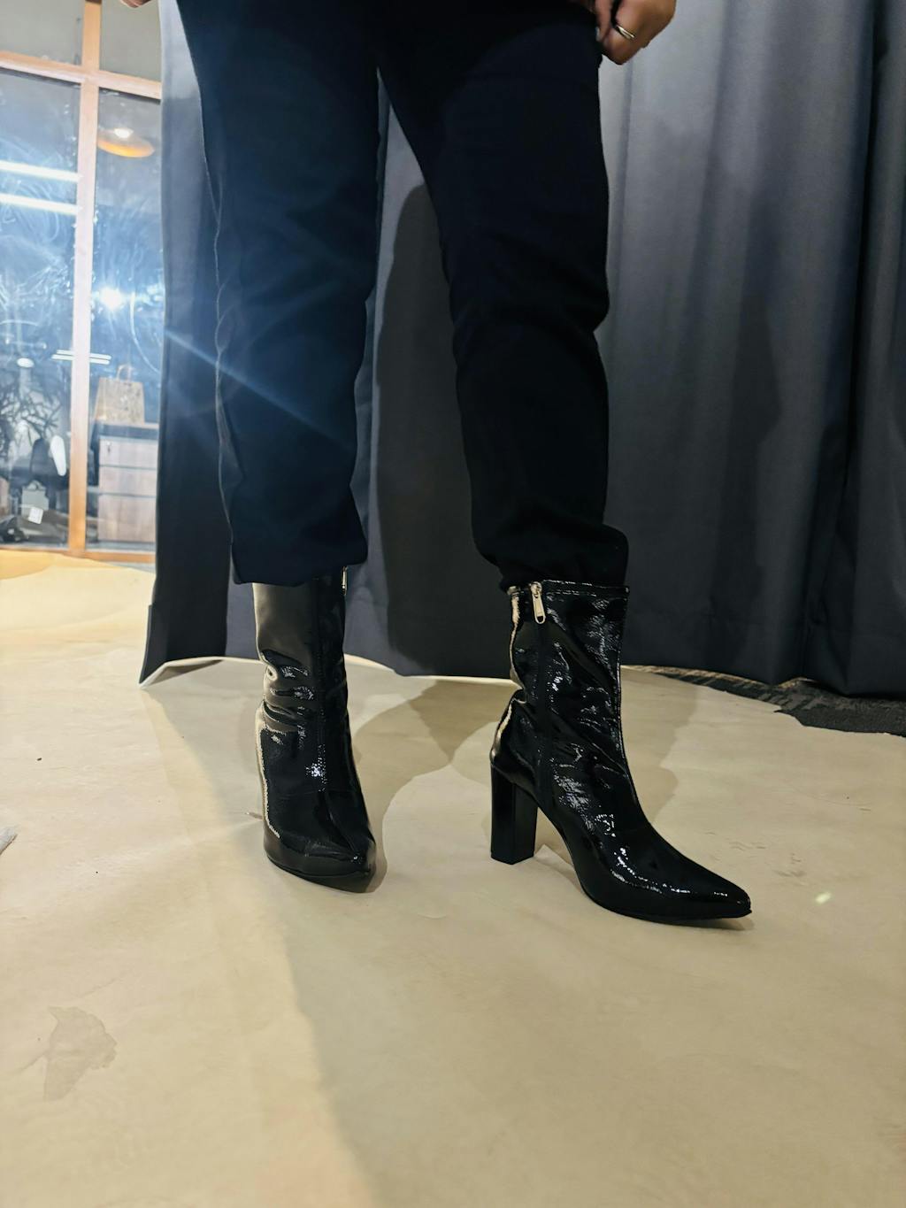 Ankle Boots High Chunky Block Heel Mid Calf Boots bring a bold and polished look to every outfit. These black heeled boots come with a glossy finish, tall block heel, and a sleek mid-calf shape that instantly sharpens your style. The design gives height, confidence, and a strong fashion-forward vibe, making these black heeled boots perfect for nights out, events, or statement everyday looks. With a smooth surface and fitted ankle, these black heeled boots add a chic, model-like touch to any fit.