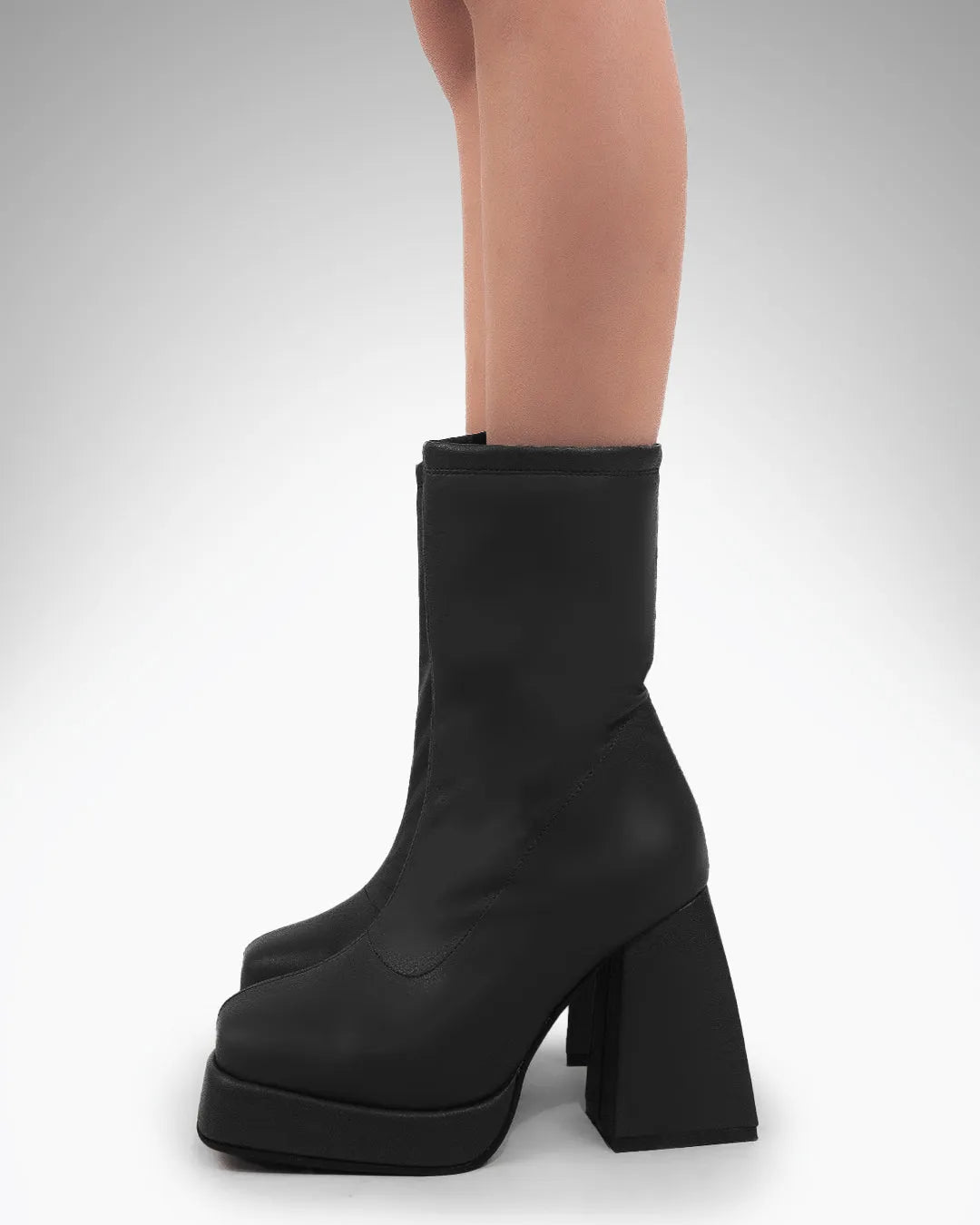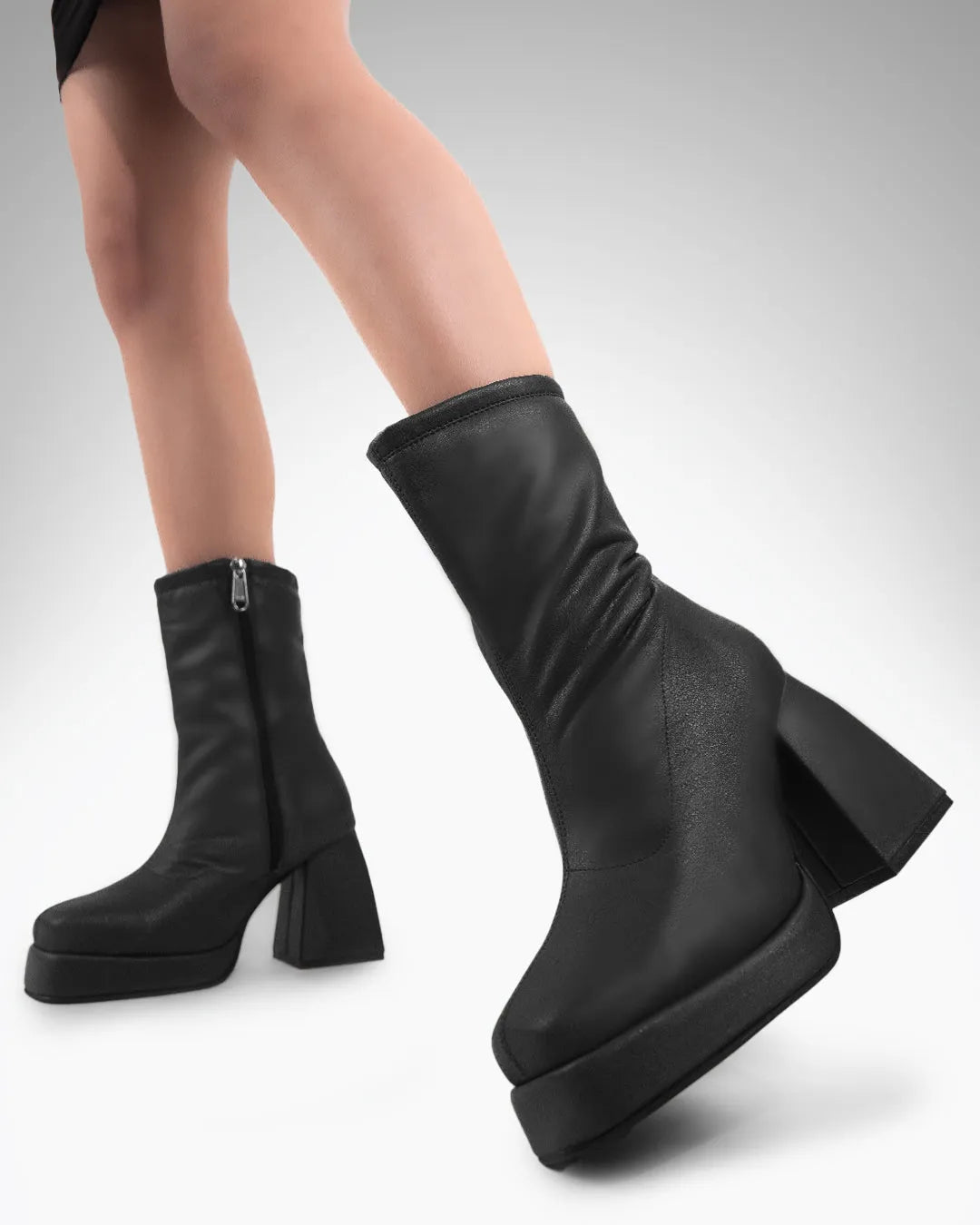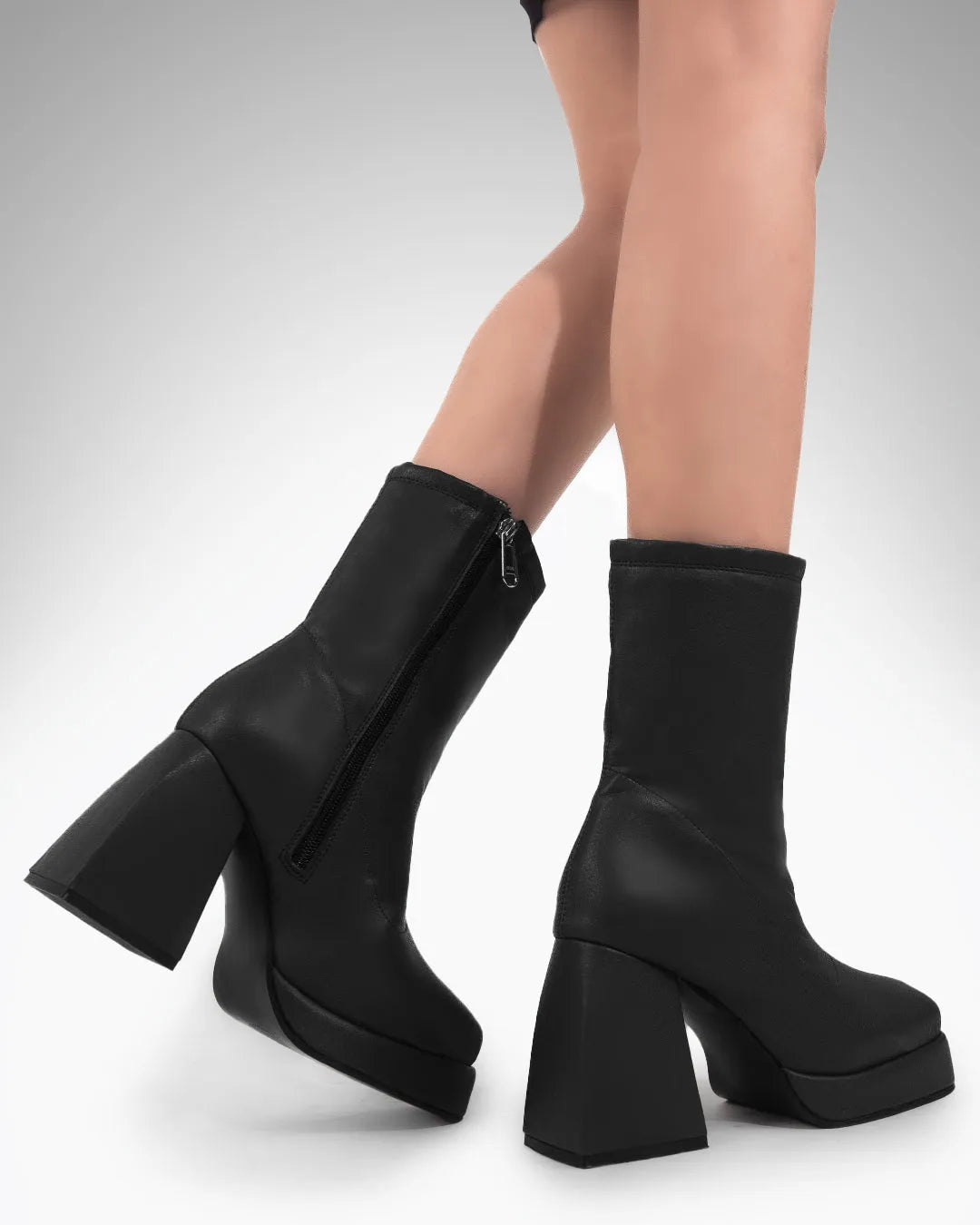 These black ankle boots bring bold structure with a clean, modern finish. Designed with a smooth matte surface and a classic round toe, they create a balanced and versatile silhouette. The sturdy block heel adds height while keeping the fit stable and supportive. With a secure zip closure and a comfortable inner feel, these black ankle boots are made for confident everyday styling.