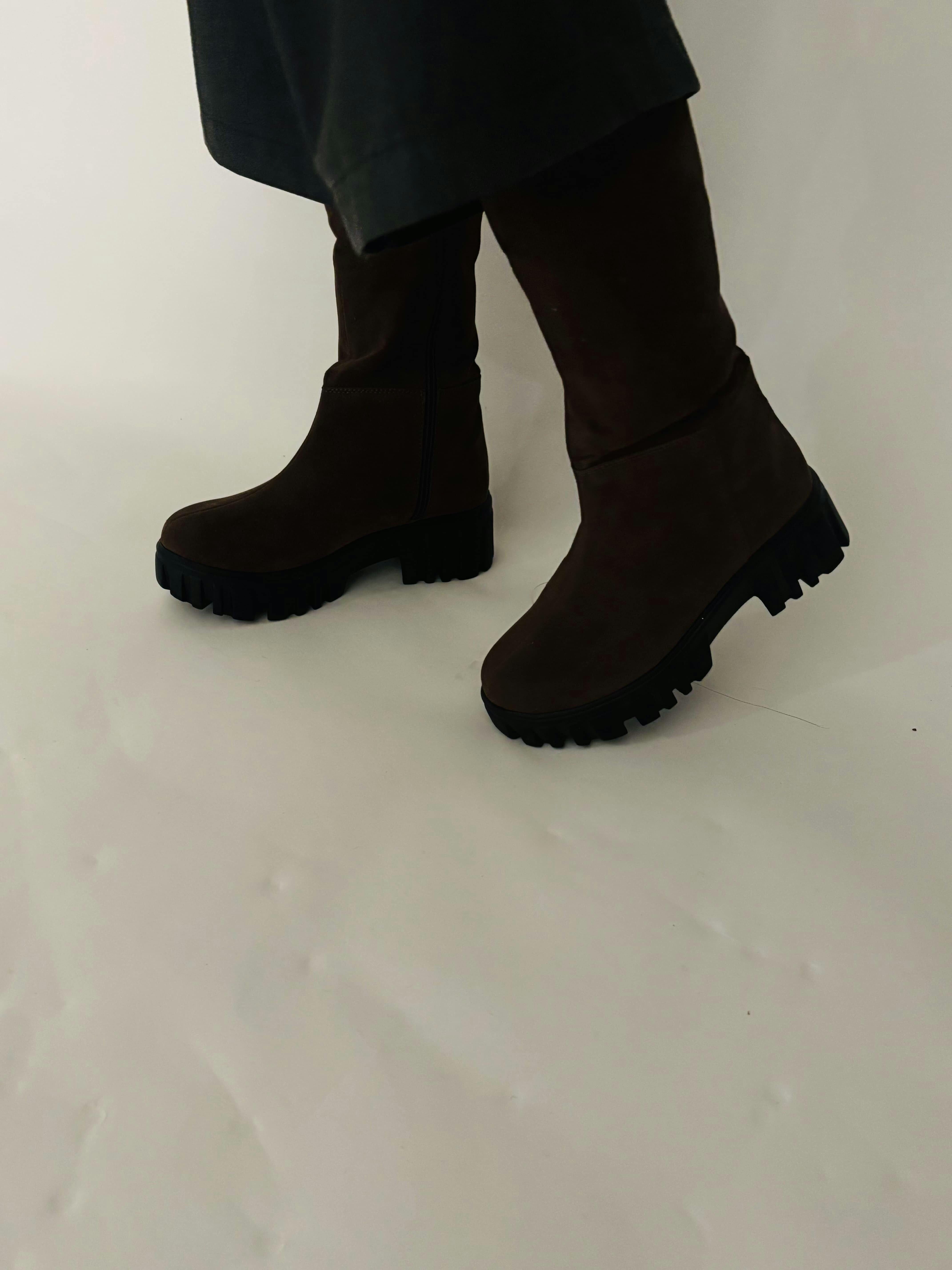 Brown Chunky Sole Knee High Long Biker Boot bring a bold biker vibe with an everyday-ready finish. Designed with a rich brown upper and a clean knee-high silhouette, these boots stand out with a chunky sole that adds height and grip without feeling heavy. The smooth finish keeps the look sharp, while the side zip closure makes them easy to wear. Built with a sturdy base and rounded toe, these high knee boots for women feel structured yet comfortable, making them a strong choice for confident styling.