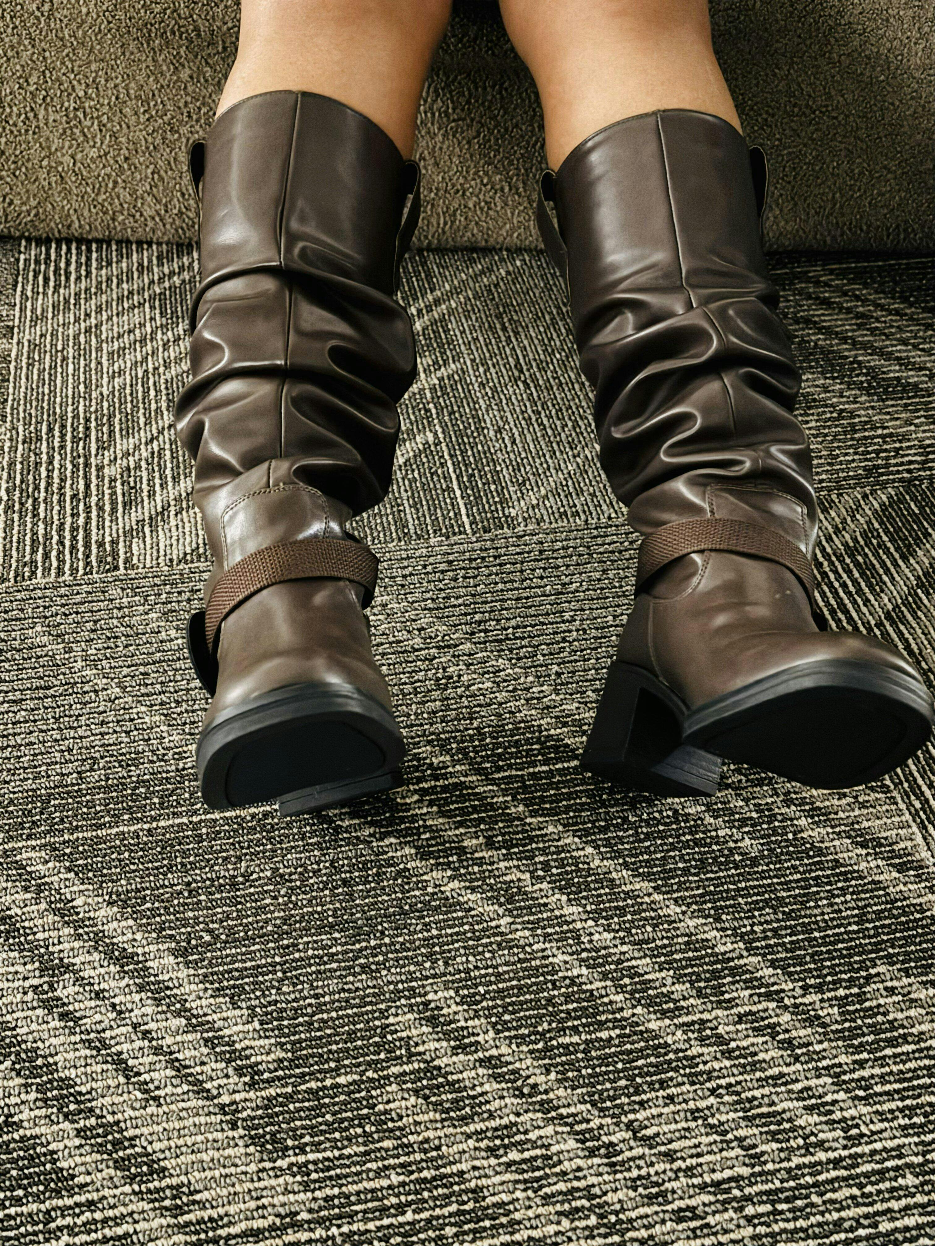 BROWN KNEE-HIGH BOOTS WITH BUCKLE AND HEEL bring vintage polish with a bold, everyday silhouette. Designed in a rich brown finish with soft slouch detailing, these brown high heel boots feel confident, refined, and easy to style. The statement buckle adds a subtle edge, while the sturdy block heel gives height without sacrificing balance. With a rounded toe and structured shaft, these brown high heel boots deliver classic charm with modern attitude. Clean lines and a tall profile make these brown high heel boots a wardrobe staple for cooler days.