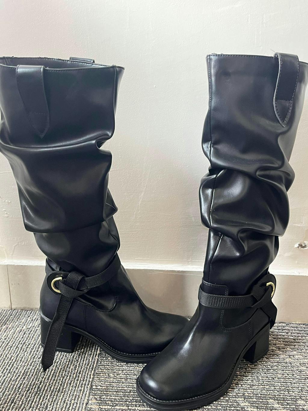 - Sturdy block heel for stable support