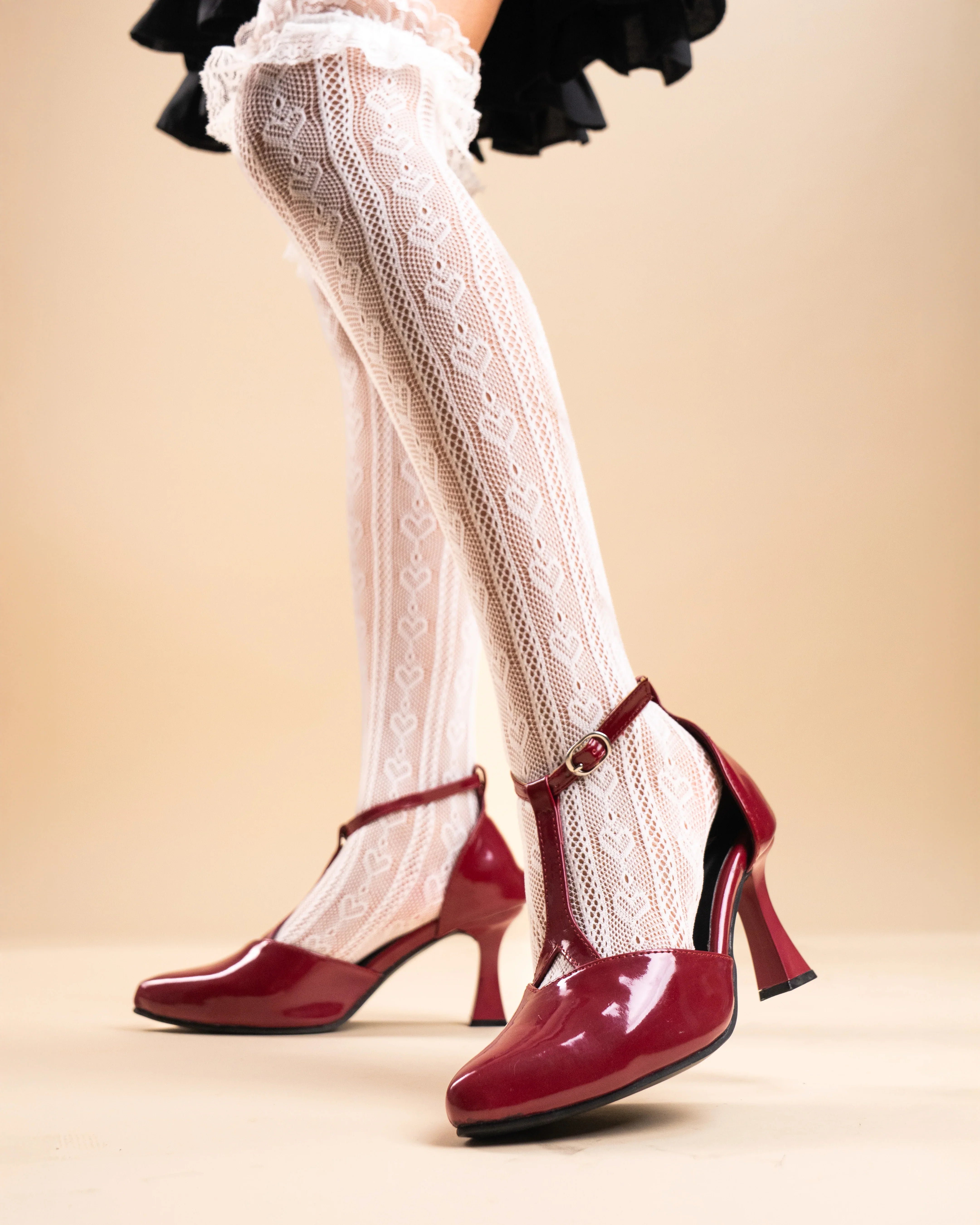Mary Jane Vintage T Strap Closed Round Toe Heels In Cherry bring a soft vintage mood with a bold, glossy finish. These mary jane heels stand out with their rich cherry tone, rounded toe shape, and classic T strap detail that adds charm without feeling dated. The smooth surface gives a polished look, while the structured block heel keeps the silhouette balanced and elegant. Designed to feel timeless yet current, these mary jane heels fit right into a chic, Pinterest inspired wardrobe.