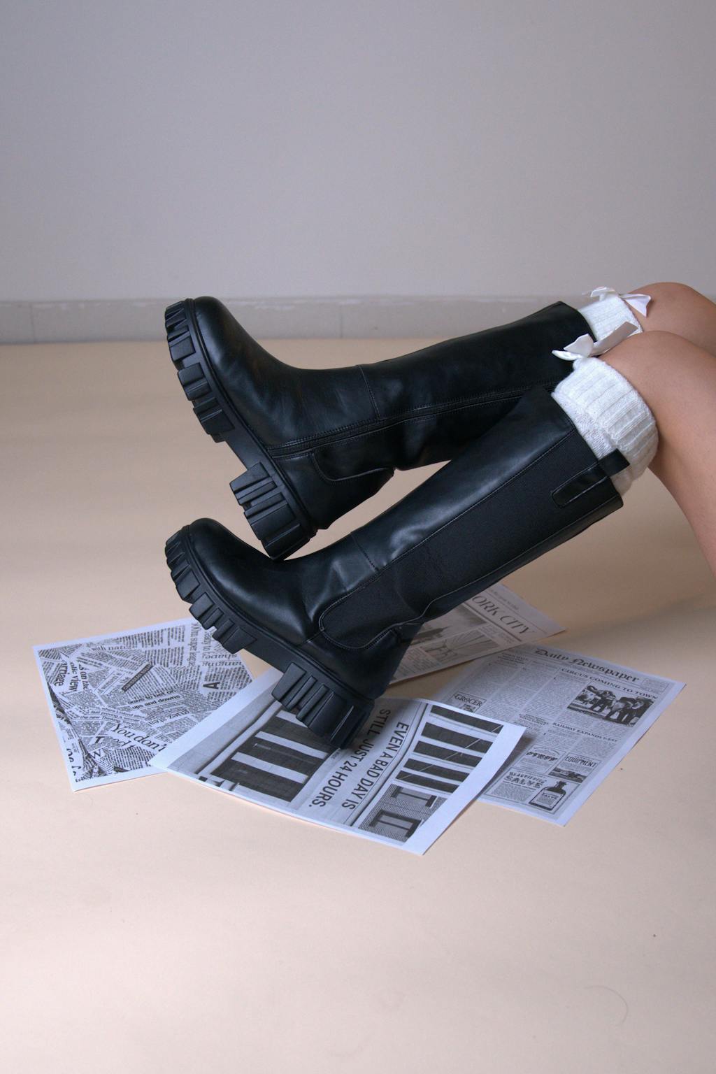 Motorcycle Side Zipper Chunky Sole Knee Boots
