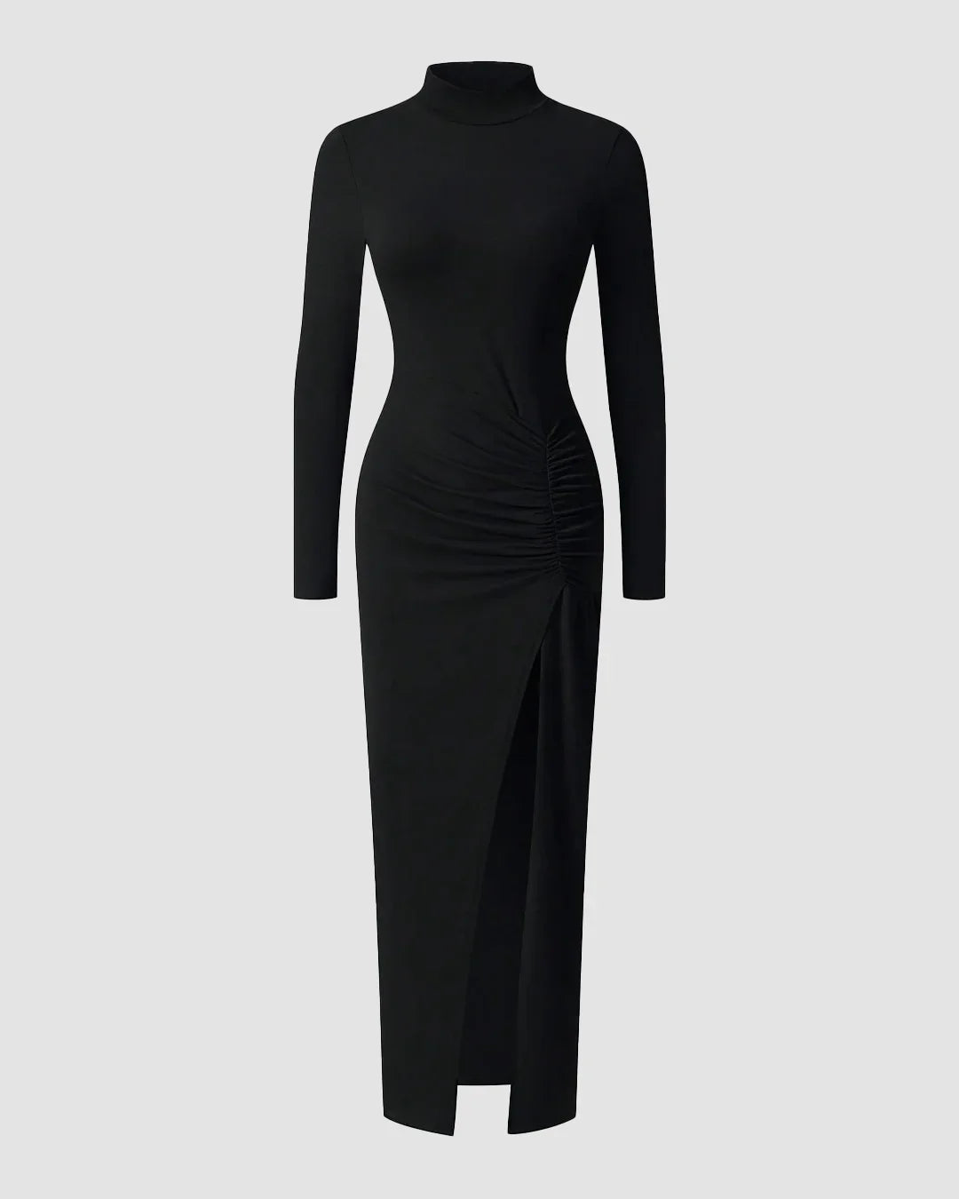Black High-Slit Turtleneck Bodycon Maxi Dress