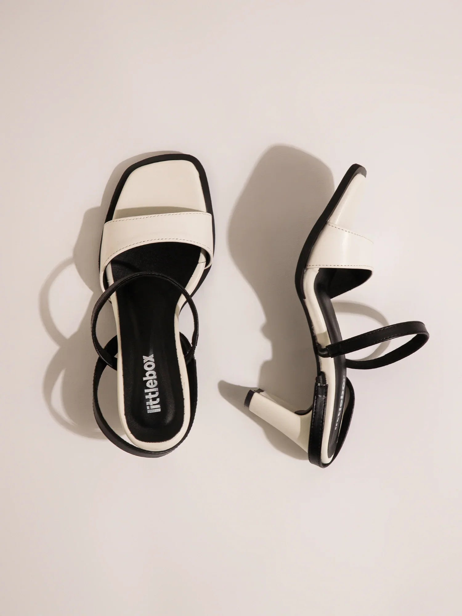 Black and White Colorblocked Square Toe Block Heels bring a modern, minimal look to your everyday style. The clean two tone design and structured silhouette make these block heels perfect for outfits that need a sharp and polished finish. With a square toe shape and slim straps, they create a sleek profile that adds height without compromising comfort.
