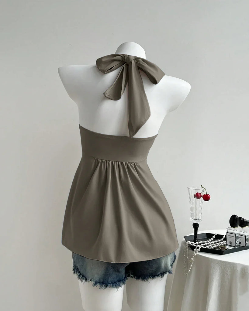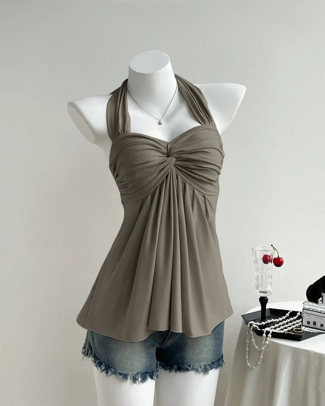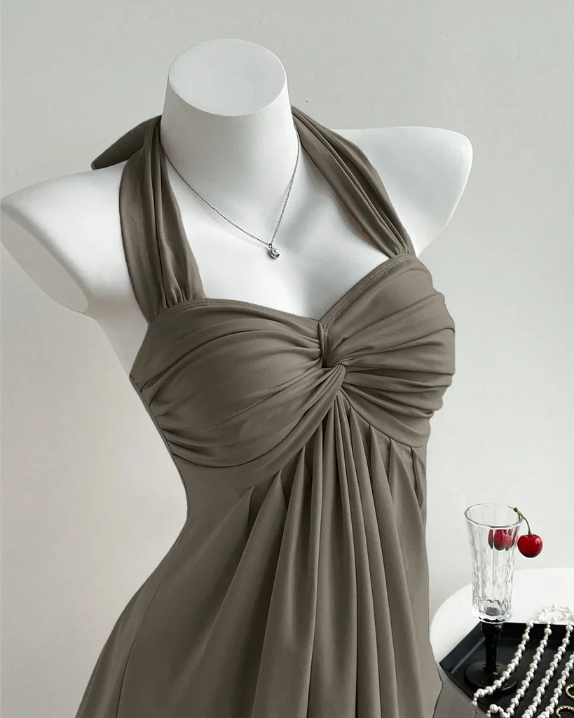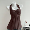 Brown Twist Front Draped Halter Top