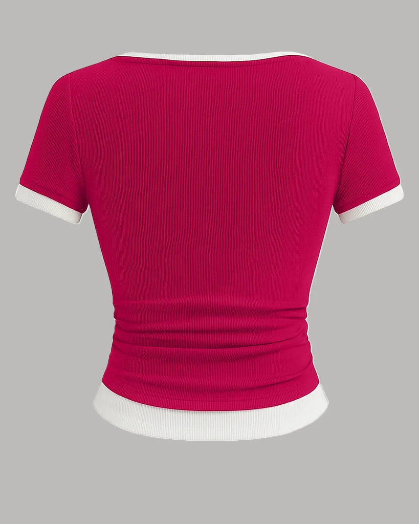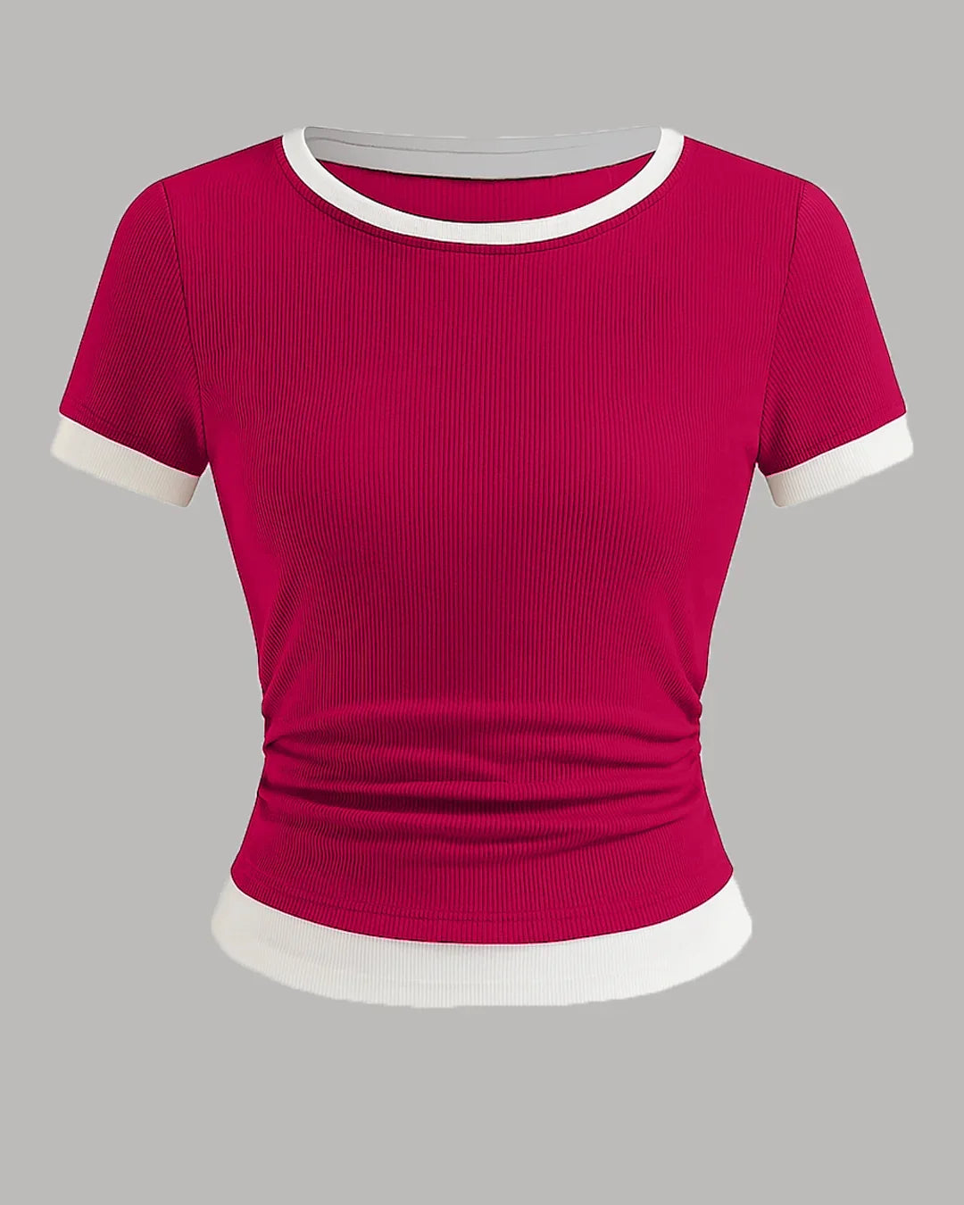 Casual Slim Fit Hot Pink and White Tee with Contrast Hem
