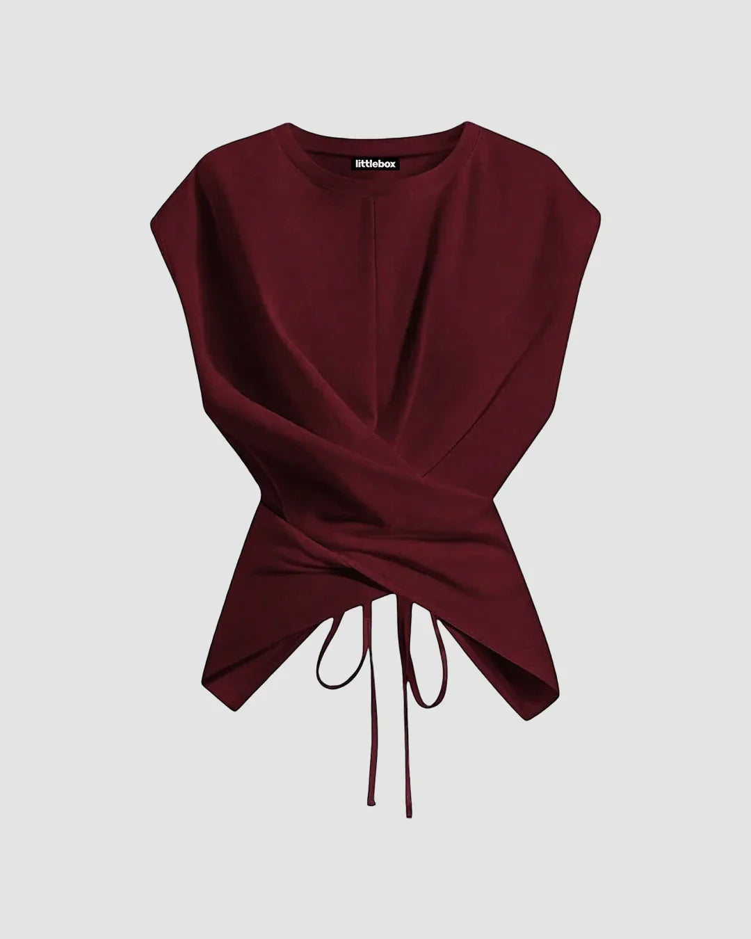 Cinched Waist Wrap Style Tie-Back Cap Sleeve Short Length in Merlot