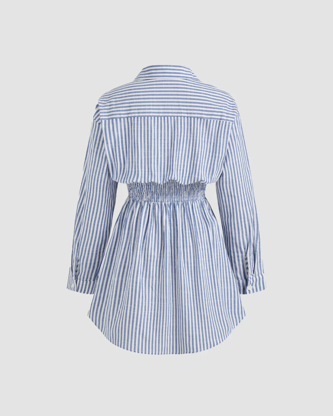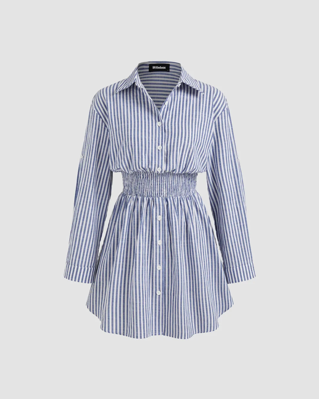 Classic Blue and White Striped Button-Up Shirt Dress for Women