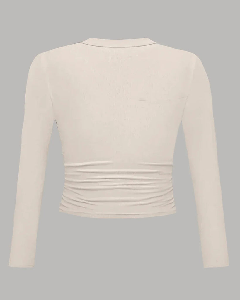 Collared V-Neck Full Sleeve Top in Apricot Curve & Plus