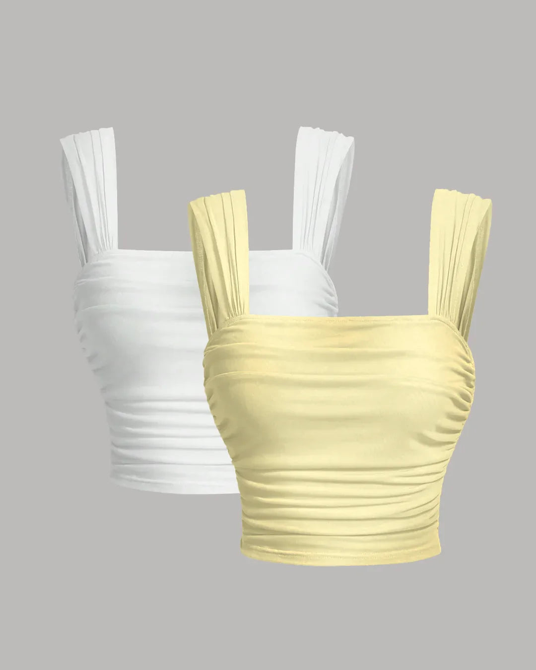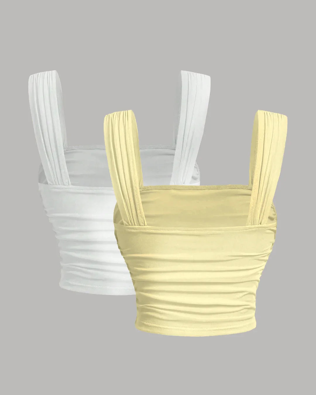 Twin Pack Ruched Square Neck Tops In White and French Vanilla