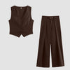 This waistcoat and trousers set blends sharp tailoring with an easy, modern silhouette. The fitted waistcoat brings a structured shape, while the pleated wide-leg trousers add movement and comfort. Perfect for making a confident statement in both work and social settings.