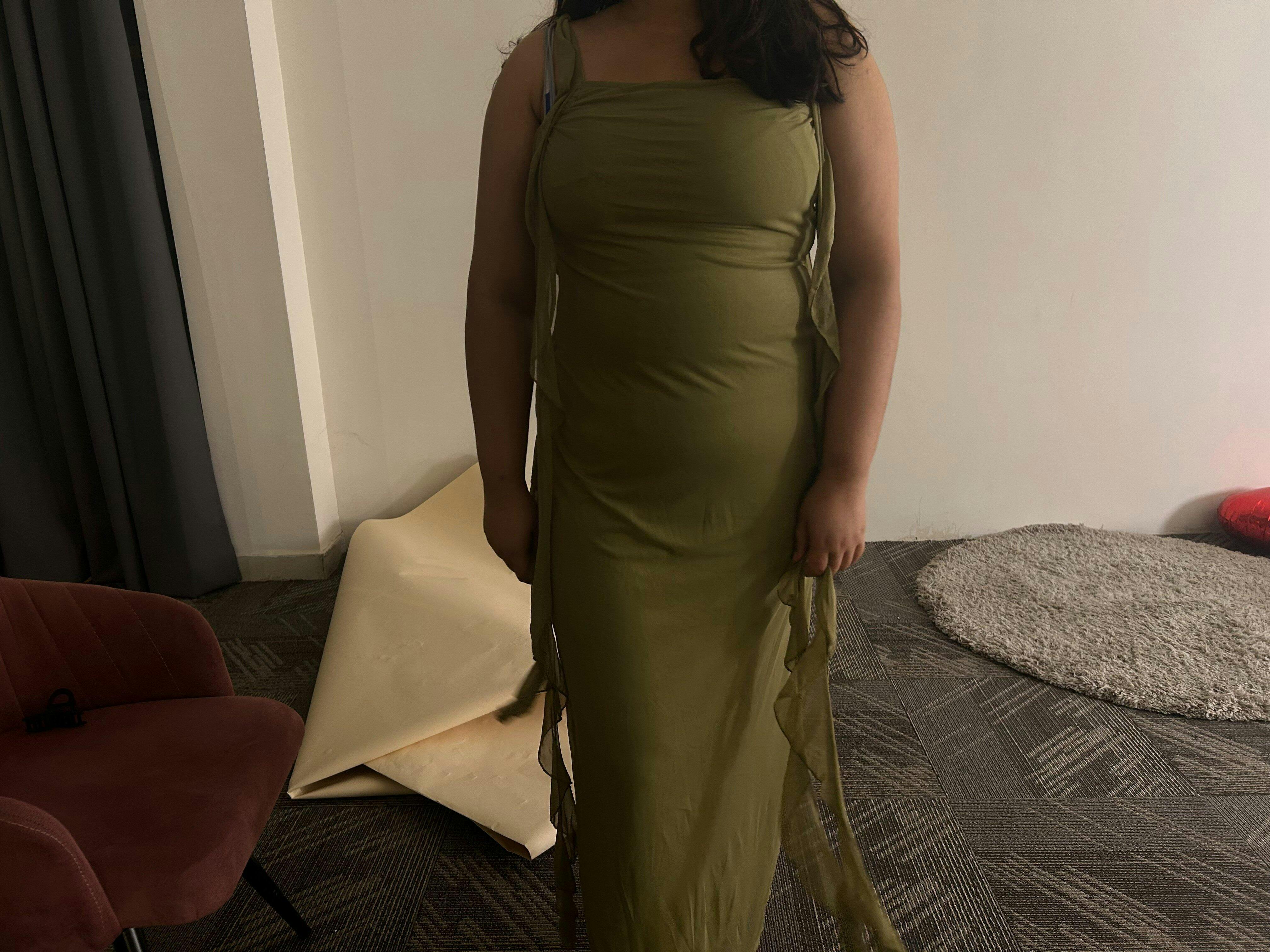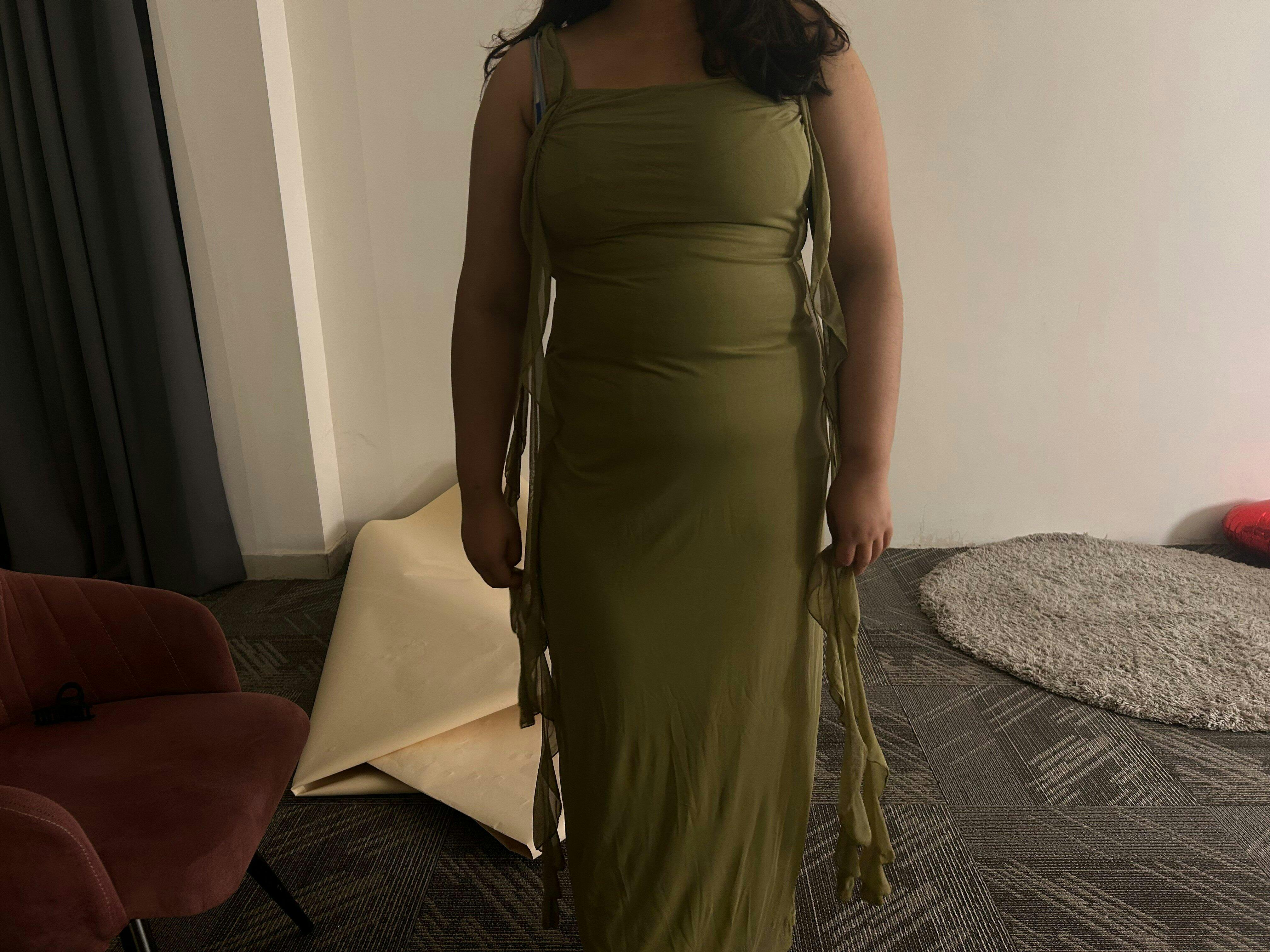 Step into the limelight with the Mesh Ruffle Green Maxi Dress, made for women who love to set trends, not just follow them. This maxi dress comes with pretty ruffle details on the sides that add a touch of style and charm.