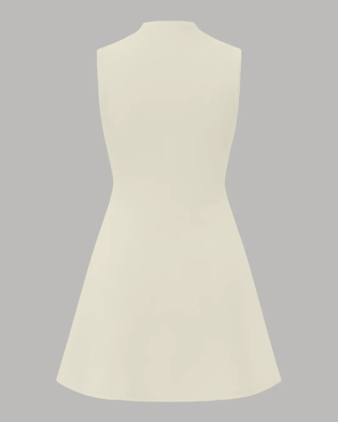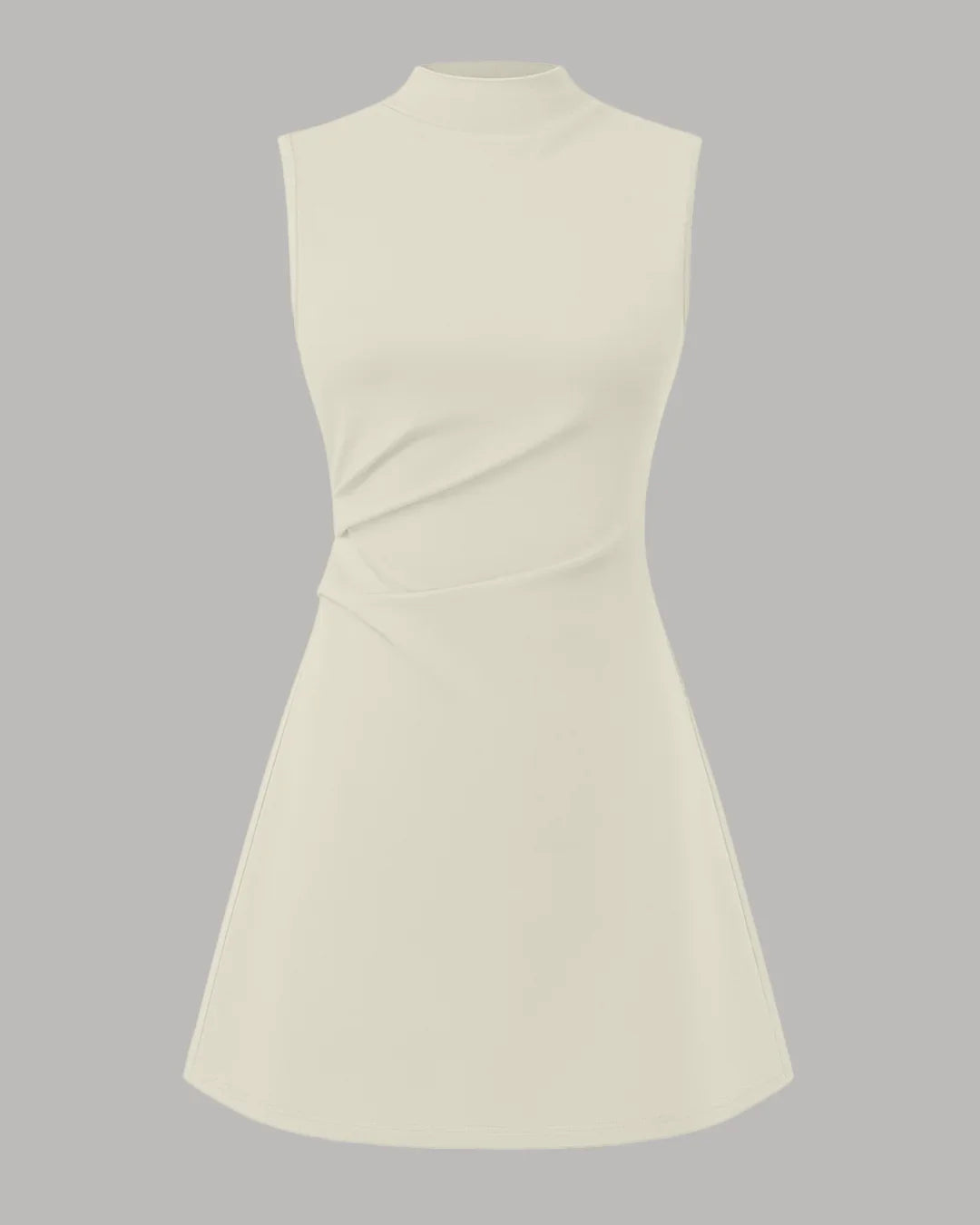 The High Neck Ruched A-Line Mini Dress in Beige blends modern polish with easy charm. Designed with a sleek high neckline and ruched side detailing, it adds subtle structure to the soft silhouette. The flared hem makes this a line mini dress versatile for everything from brunch to evening catch-ups.
