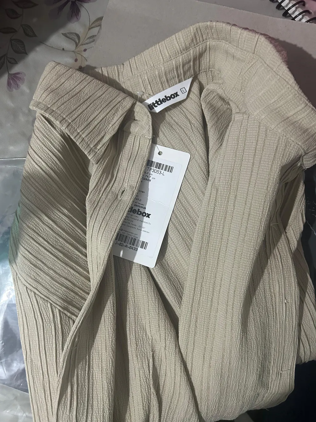 This beige button up shirt brings a clean, fitted look with a soft ribbed texture that adds subtle detail. Designed with a collared neckline and full sleeves, it sits close to the body for a flattering shape. The front button closure keeps the style minimal, while the slightly curved hem gives it a smooth finish. This beige button up shirt feels modern, easy, and perfect for everyday wear.