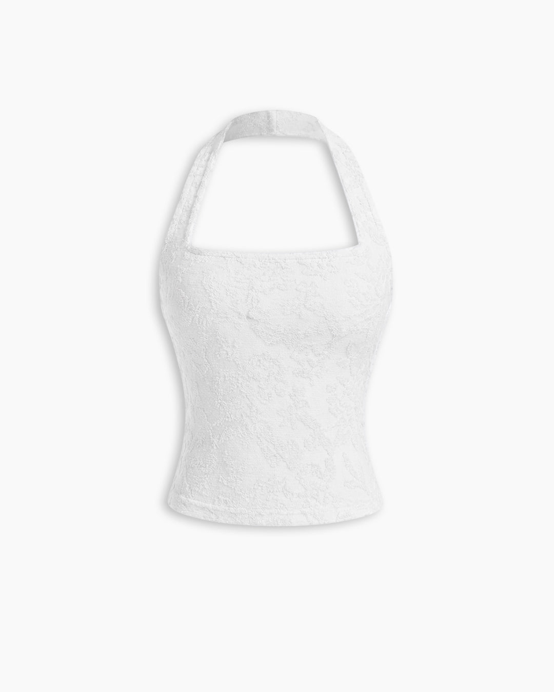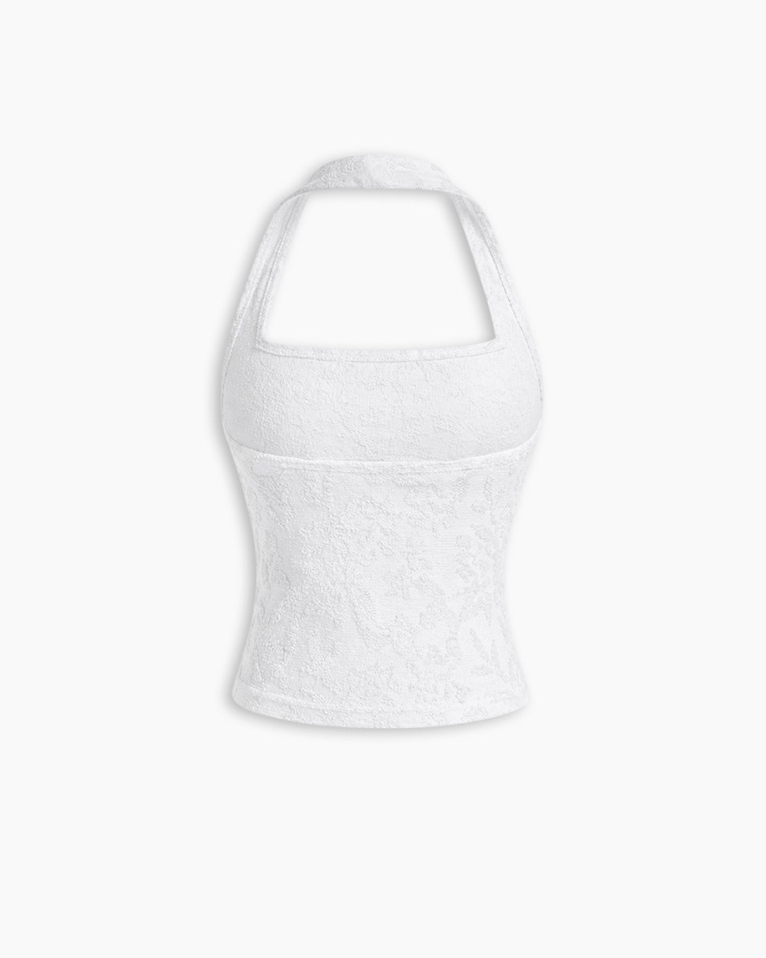 This Lace Halter Sheer Fitted Top in White brings a soft, romantic vibe with its delicate texture and fitted silhouette. Designed with a halter neckline, it highlights the shoulders while adding a clean, elevated touch. The sheer lace finish gives it a subtle, feminine edge, while the fitted shape enhances your natural curves. This lace halter sheer top in white keeps your look fresh, minimal, and effortlessly stylish.