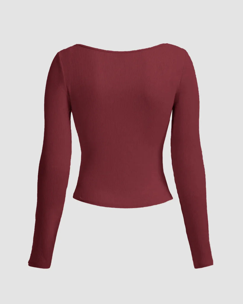 - A maroon long sleeve crop top that transitions from day to night effortlessly