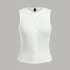 This button-down sleeveless top is your new everyday essential with a flattering edge. Crafted in soft ribbed fabric, it hugs in all the right places while the front button detail adds a clean, elevated vibe. The sleeveless cut keeps it casual but polished.