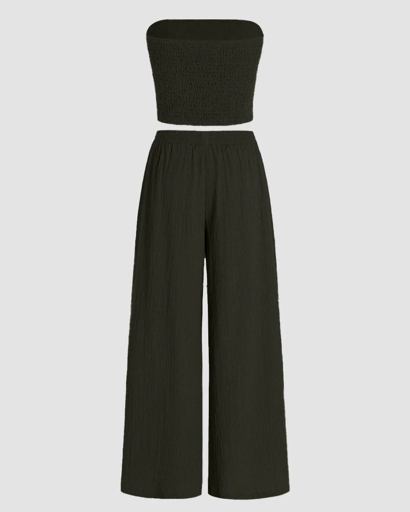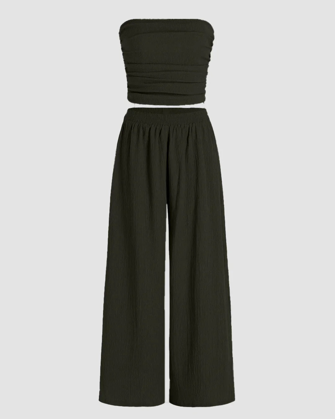 Off Shoulder Crop Top And Wide Leg Pant In Olive Green