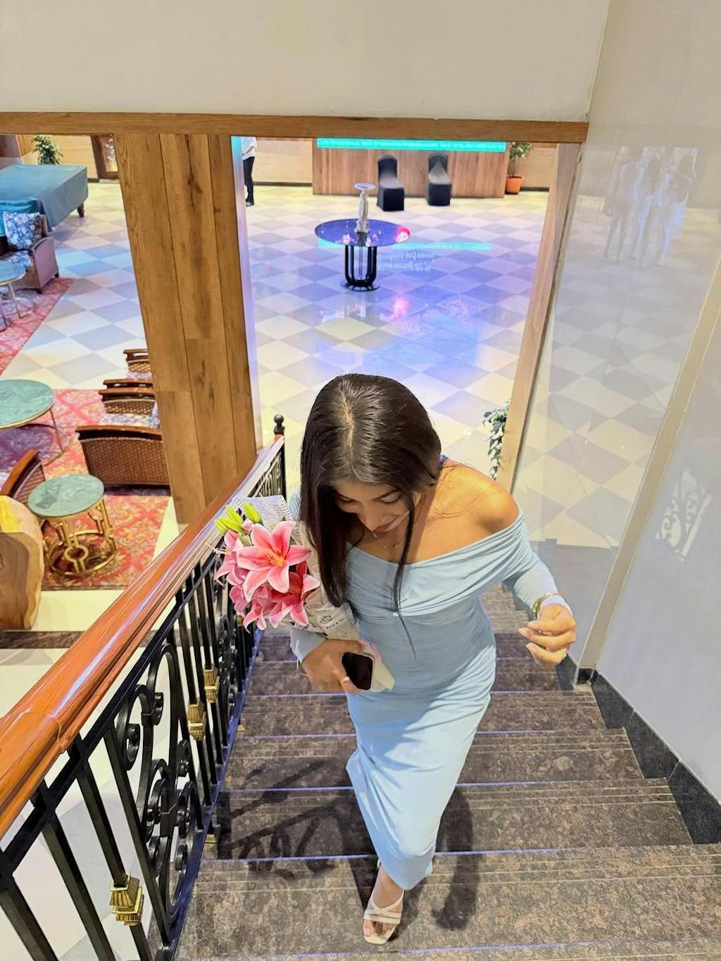 - Evening Look: Go sleek with gold accessories and a slick bun