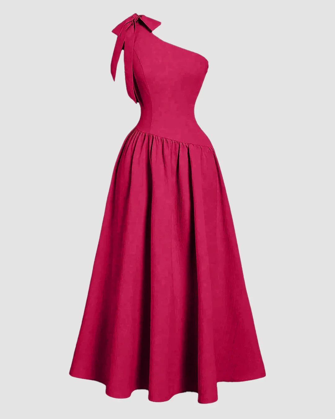 The One-Shoulder Bow Fit & Flare Midi Dress in Hot Pink is a playful yet elegant pick for standout style. With its asymmetric neckline finished with a chic bow detail, this hot pink dress adds a bold twist to classic femininity. The fit & flare silhouette enhances movement, making it perfect for brunch, parties, or evening outings.