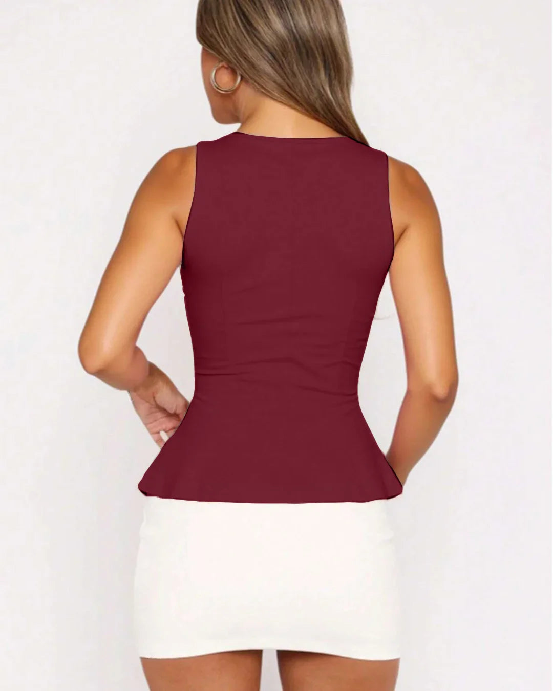 Peplum Hem Fitted Sleeveless Top in Burgundy