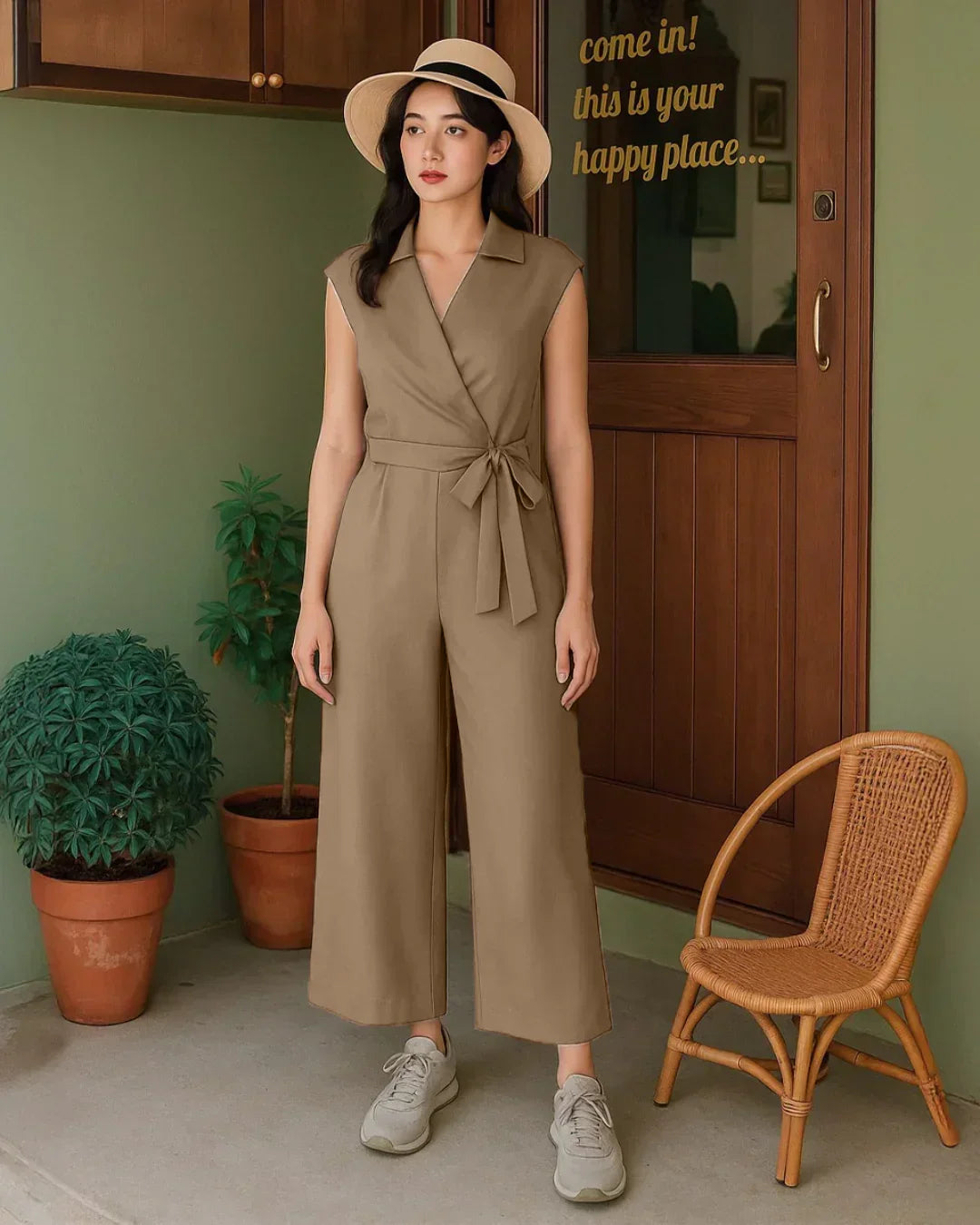 - Versatile brown jumpsuit that works from day to night