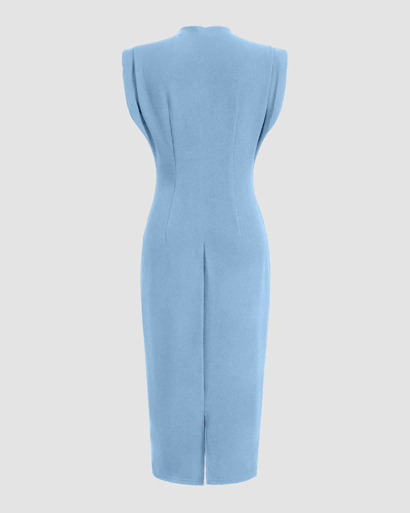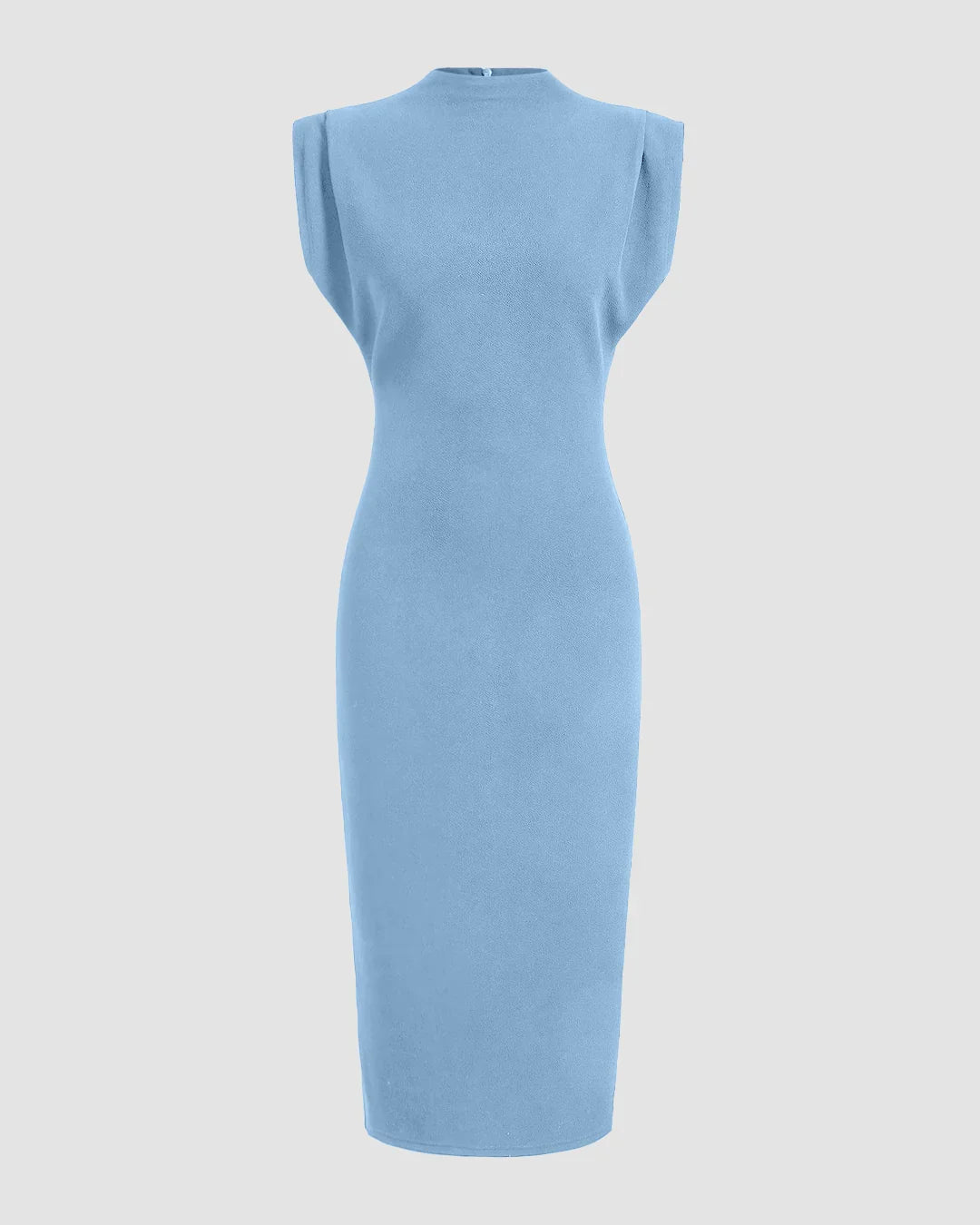 Powder Blue Structured Shoulder Bodycon Midi Dress
