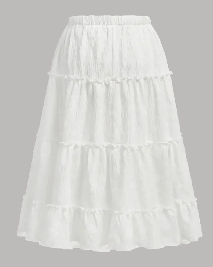 Retro Casual High Waist Solid Long Ankle Pleated Skirt in White Curve & Plus
