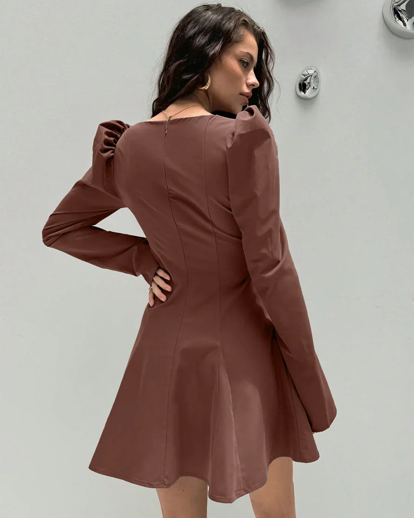 Chic, versatile, and easy to style, this a line mini dress is ideal for brunches, casual dates, or nights out. The warm brown tone gives it a refined edge, pairing effortlessly with accessories and heels.