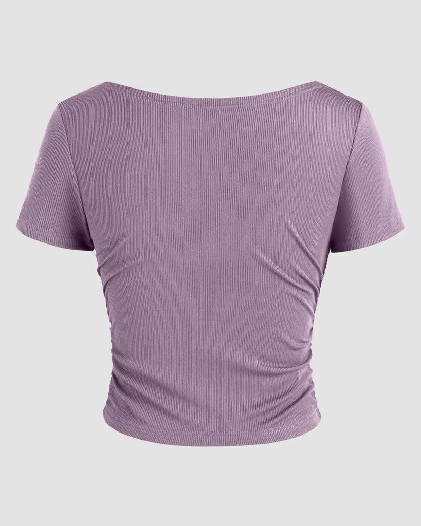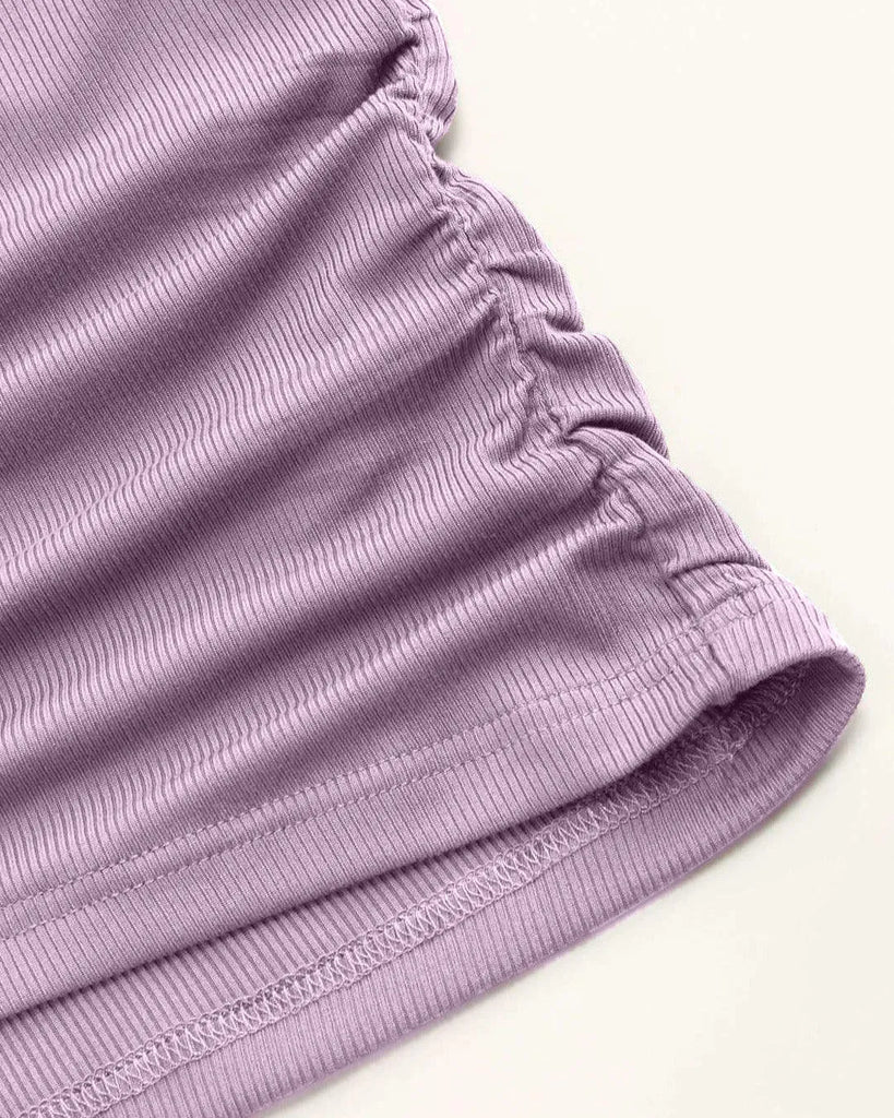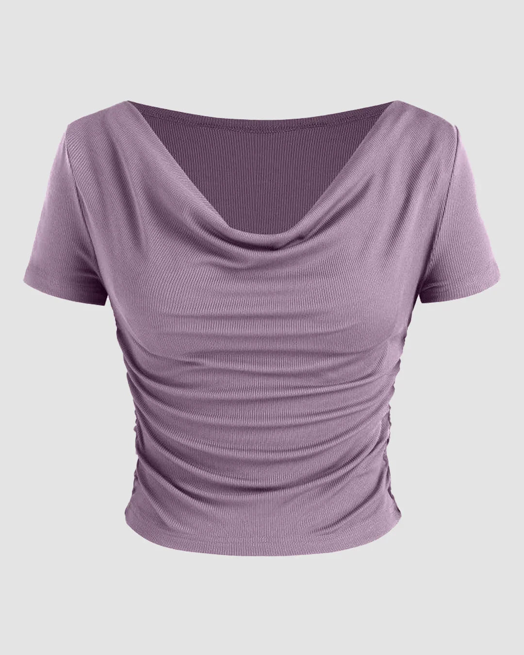 Ruched Short-Sleeve Cowl Neck Top In Lilac