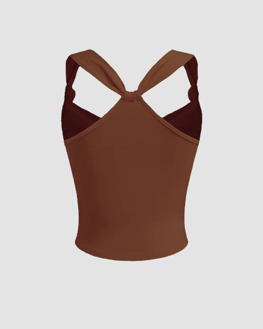Ruched Strap Sweetheart Neck Sleeveless Top in Burnt Orange