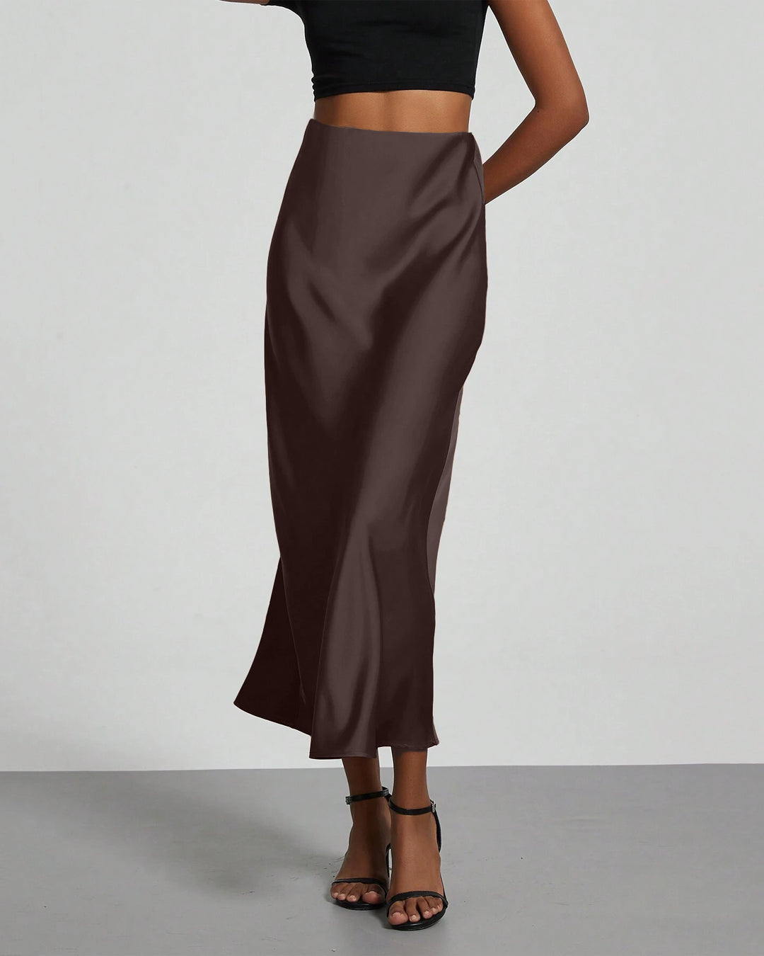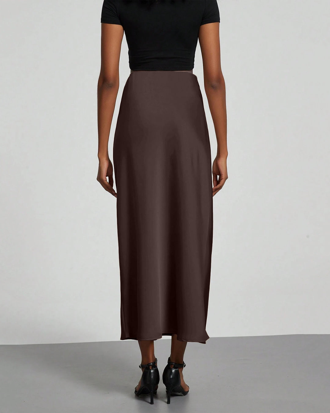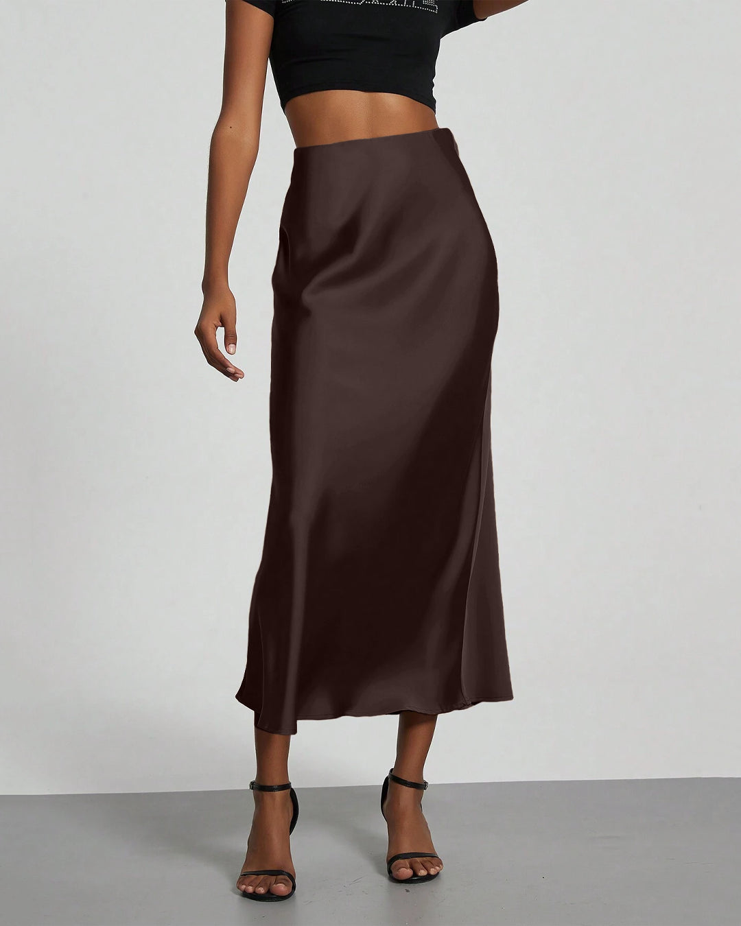 Satin Midi Skirt in Coffee for Women brings an effortless flow and polished finish to everyday dressing. Designed with a clean silhouette and soft satin feel, this Midi Skirt in Coffee sits smoothly at the waist and falls into a graceful midi length that moves beautifully as you walk. The minimal design keeps it timeless, while the rich Coffee tone adds just the right amount of statement.