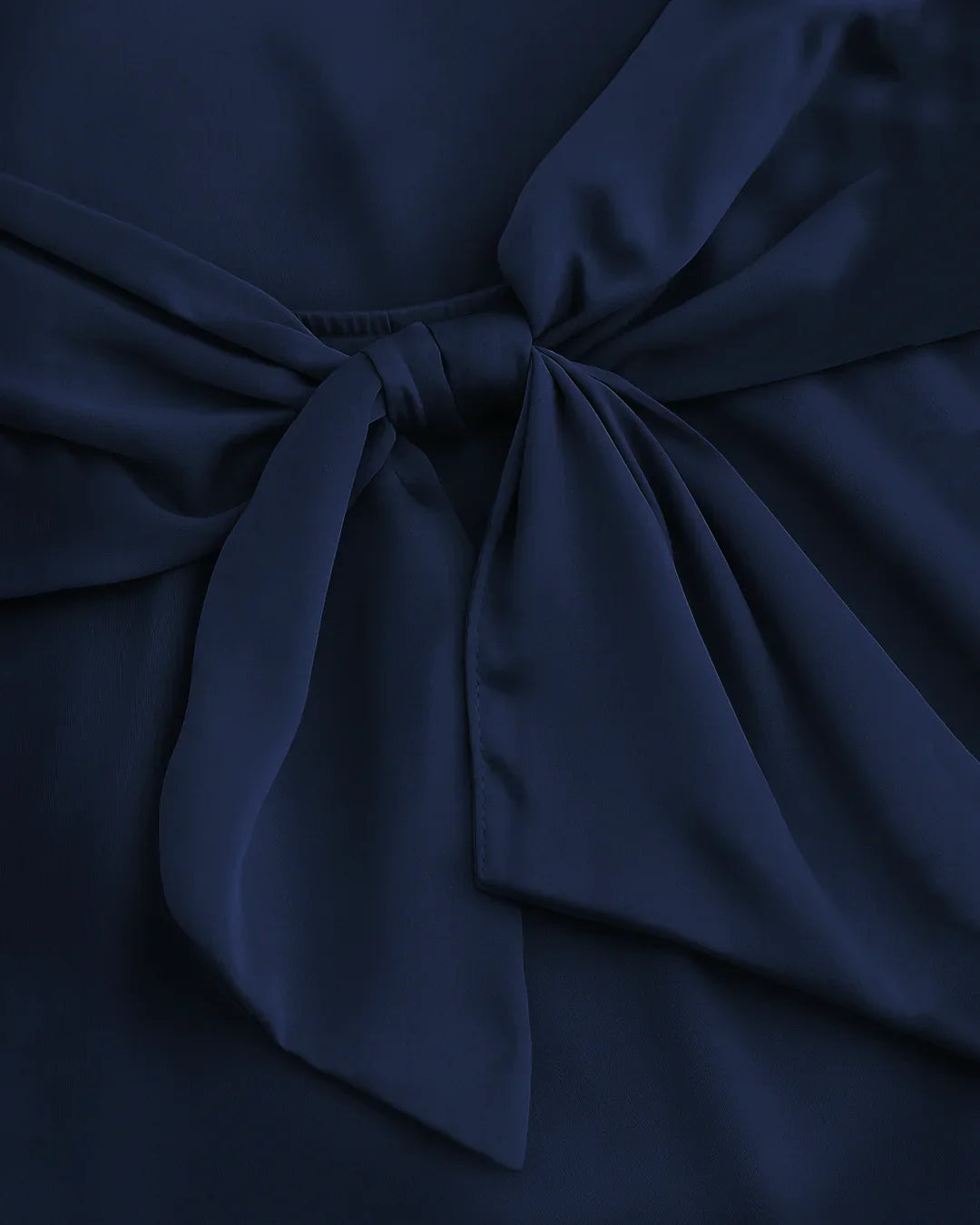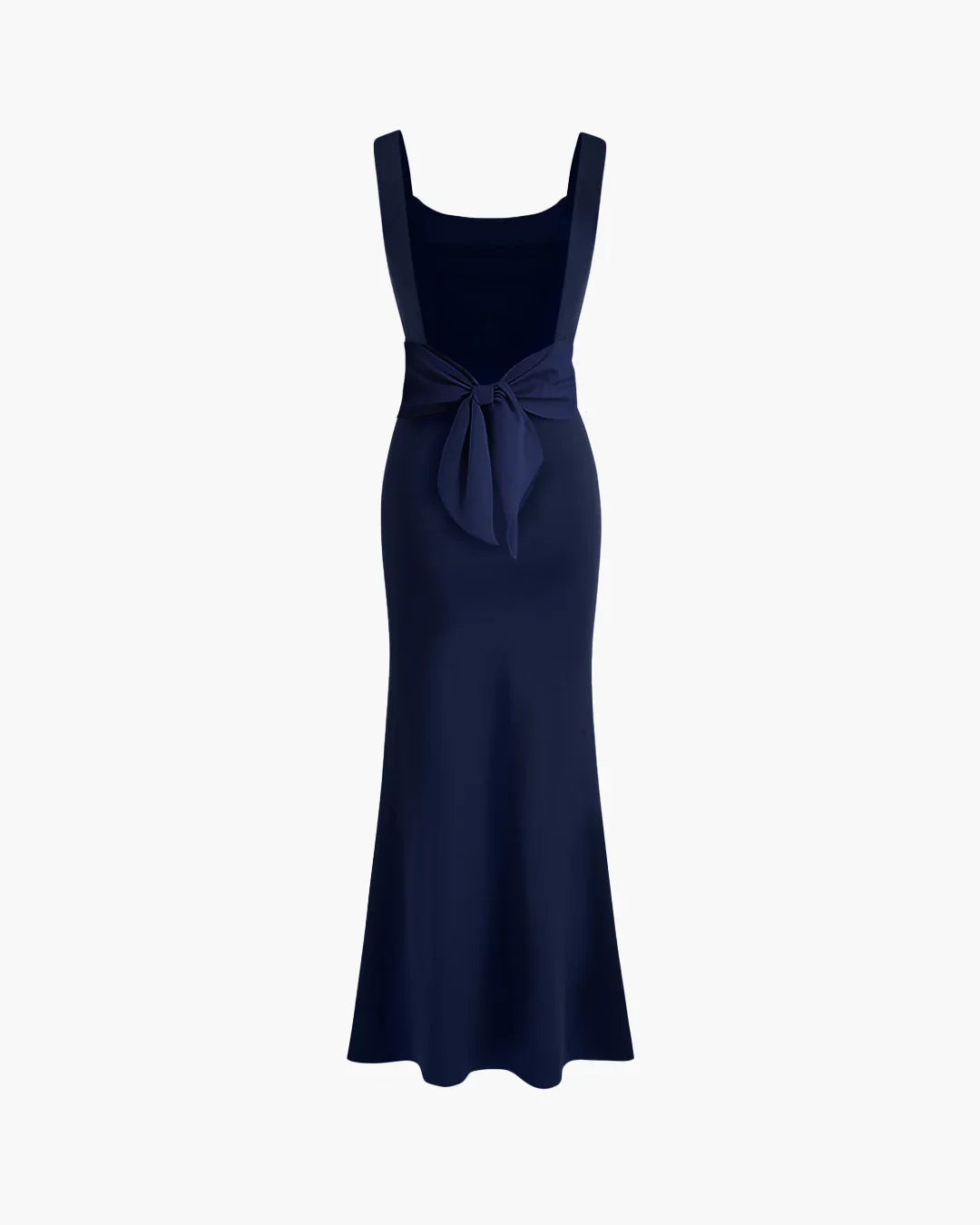 Turn heads without trying in our Scoop Neck Backless Bodycon Dress in Navy Blue. Sleek lines meet sculpting curves in this backless bodycon dress, complete with a bold bow tie at the waist and a flattering scoop neckline.