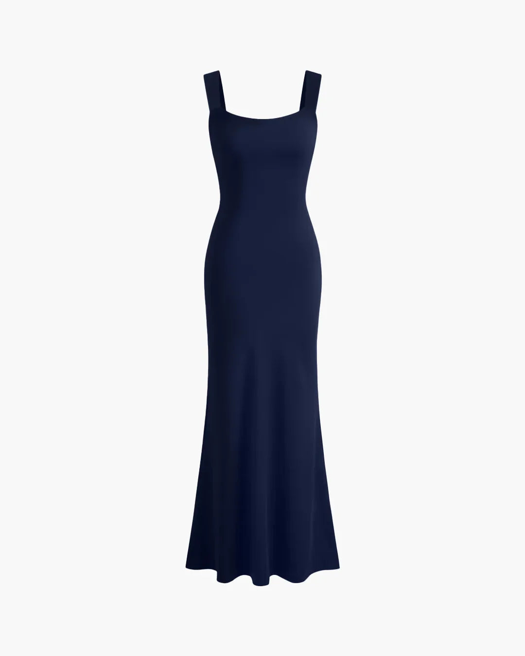 Scoop Neck Backless Bodycon Dress in Navy Blue