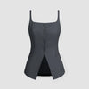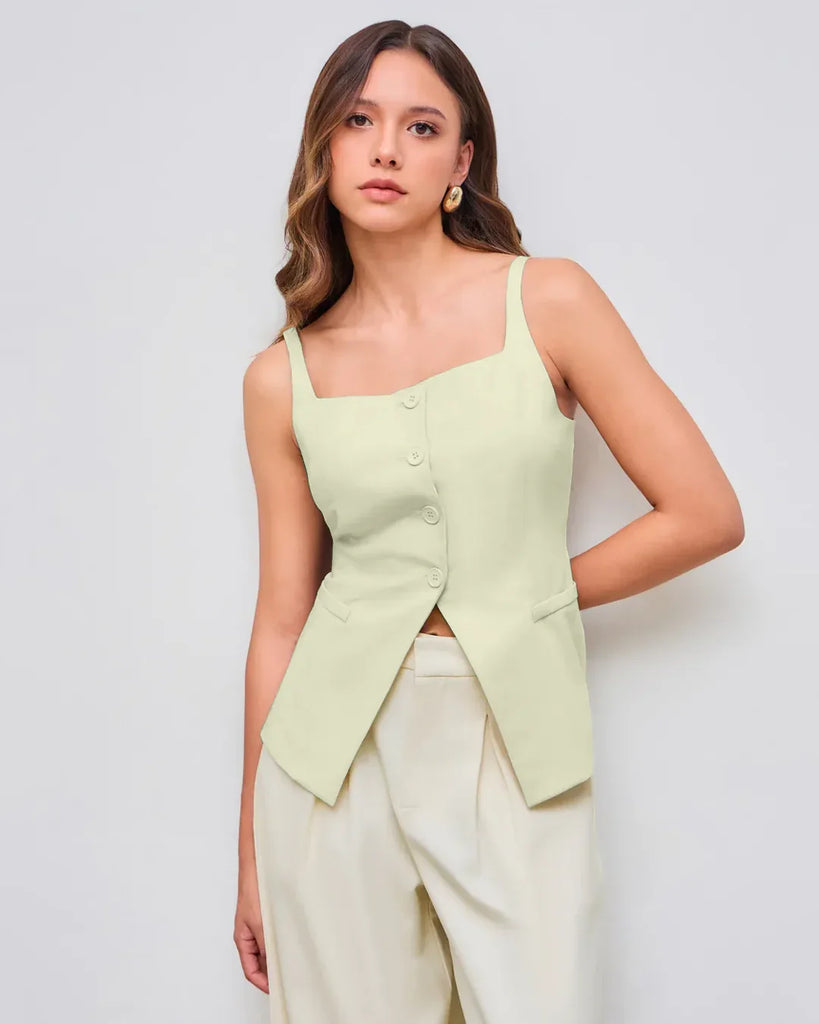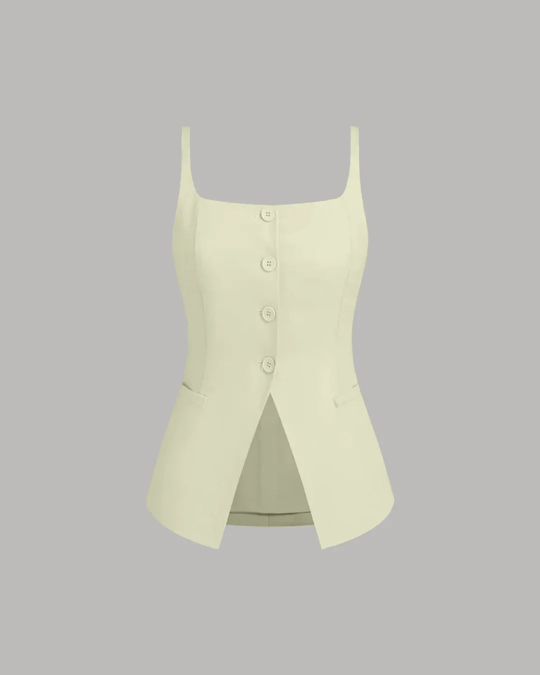 Sleeveless Button Down Corset Style Top in Beige is all about tailored charm with a hint of modern minimalism. Designed with a structured silhouette, front buttons, and a slightly flared hem, this beige sleeveless top gives a polished yet effortless vibe. The neutral shade makes it a go-to for pairing with just about anything in your wardrobe.