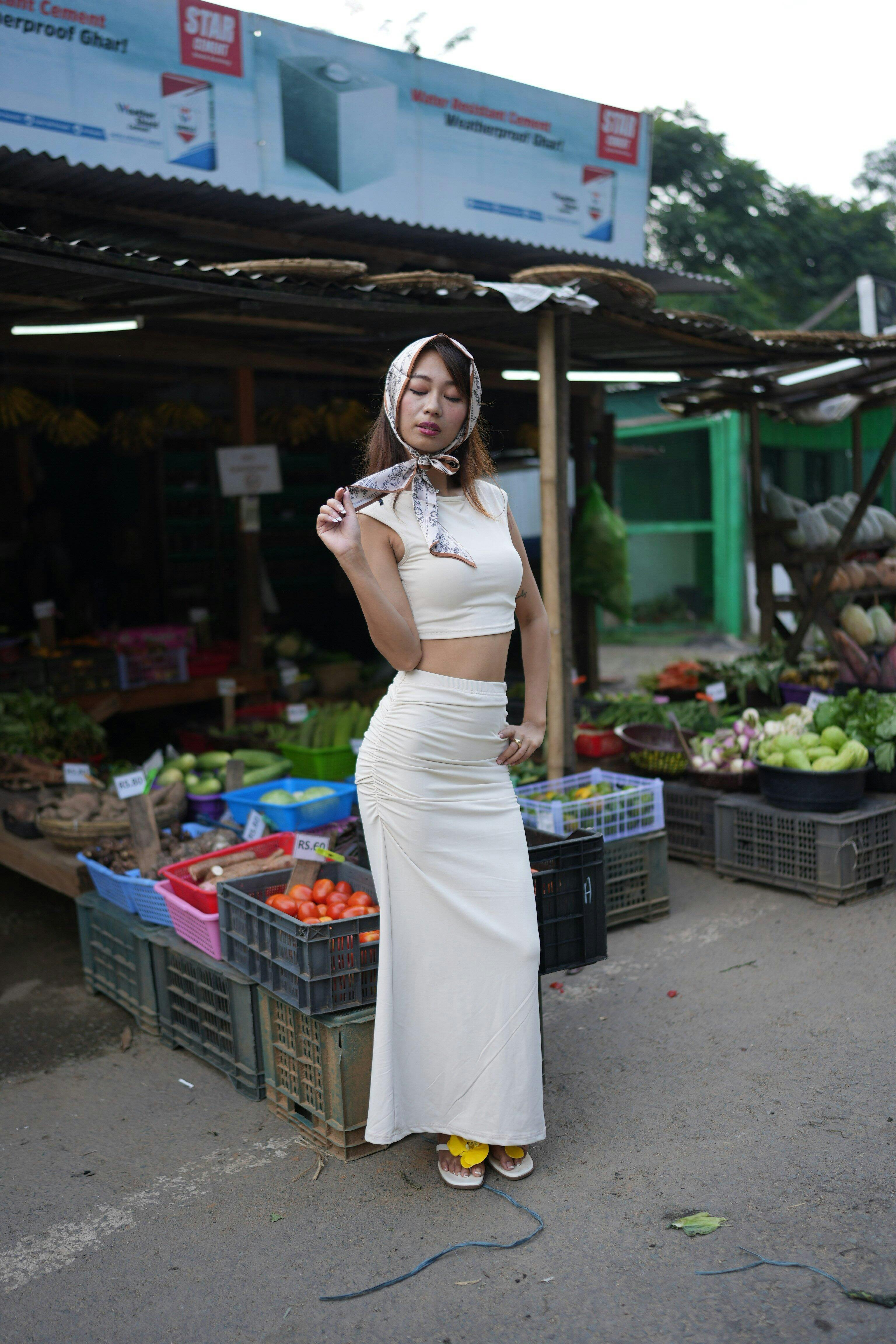 We are introducing the Sleeveless Crop Tank Top & Ruched Maxi Skirt In Off White, a cute and comfy outfit for brunch, evenings out, or chill vacation days. This crop top with maxi skirt set comes with a sleeveless top and a ruched high-waisted skirt that moves nicely when you walk. Made from soft and breathable fabric, this crop top with maxi skirt outfit is great for keeping your look simple and stylish.