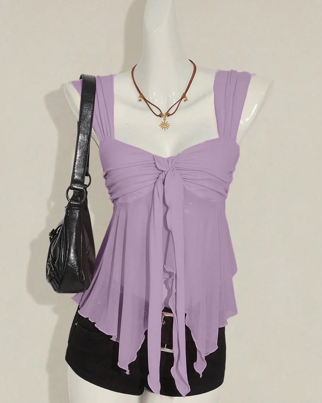 V-Neck Layered Ruffle Tie Front Sleeveless Top in Purple