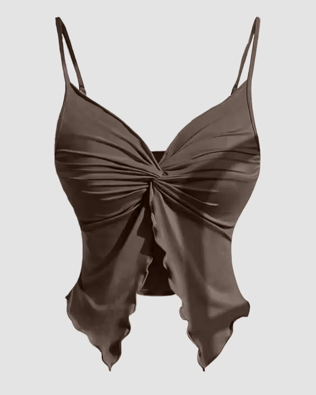 The Solid Minimalist Twisted Design Tank Top in Brown is all about clean lines with a subtle twist. Designed to keep things simple yet stylish, this piece features a soft twisted detail that adds just enough interest without overpowering the look. The fitted silhouette sits close to the body, giving a flattering shape while still feeling comfortable.