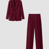 Solid Tailored Blazer & Straight Trousers Co-Ord Set in Dark Grey