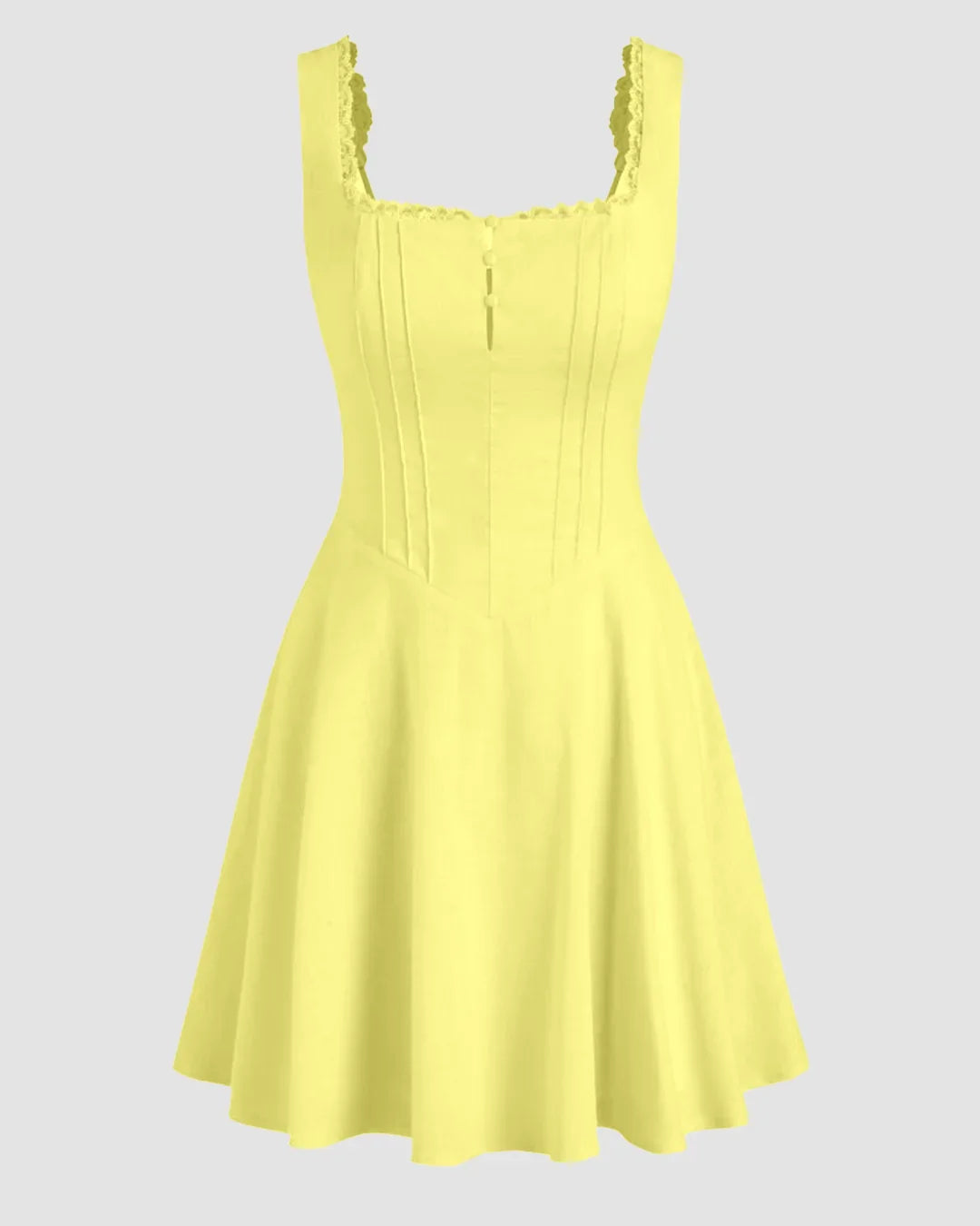 Square Neck Fit & Flare A-Line Mini Dress in Yellow