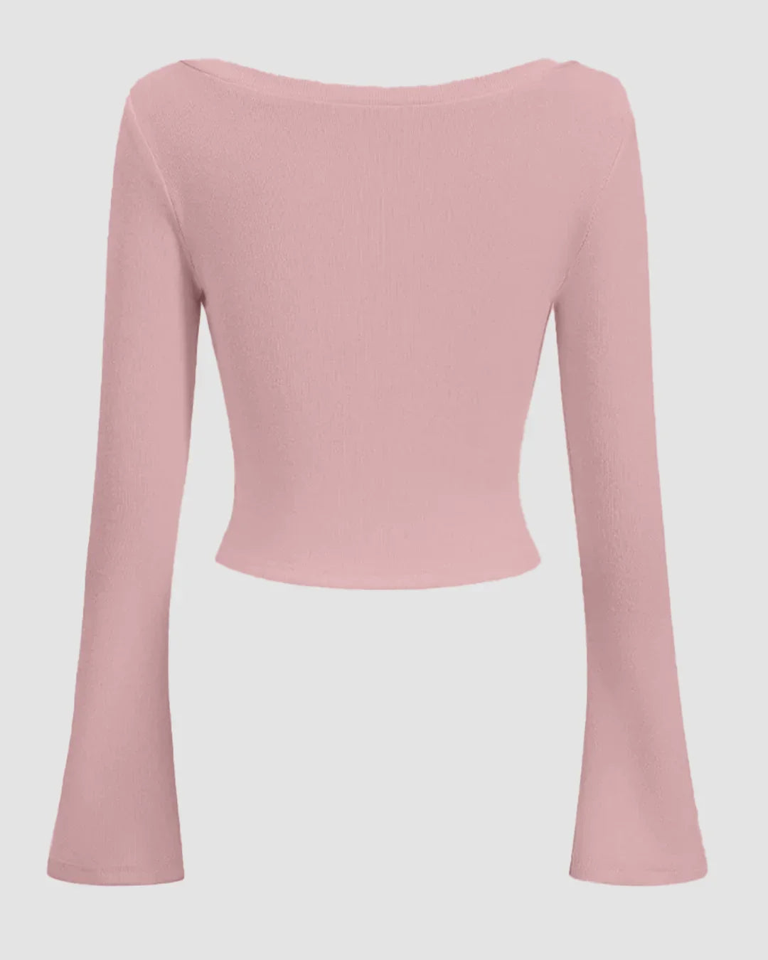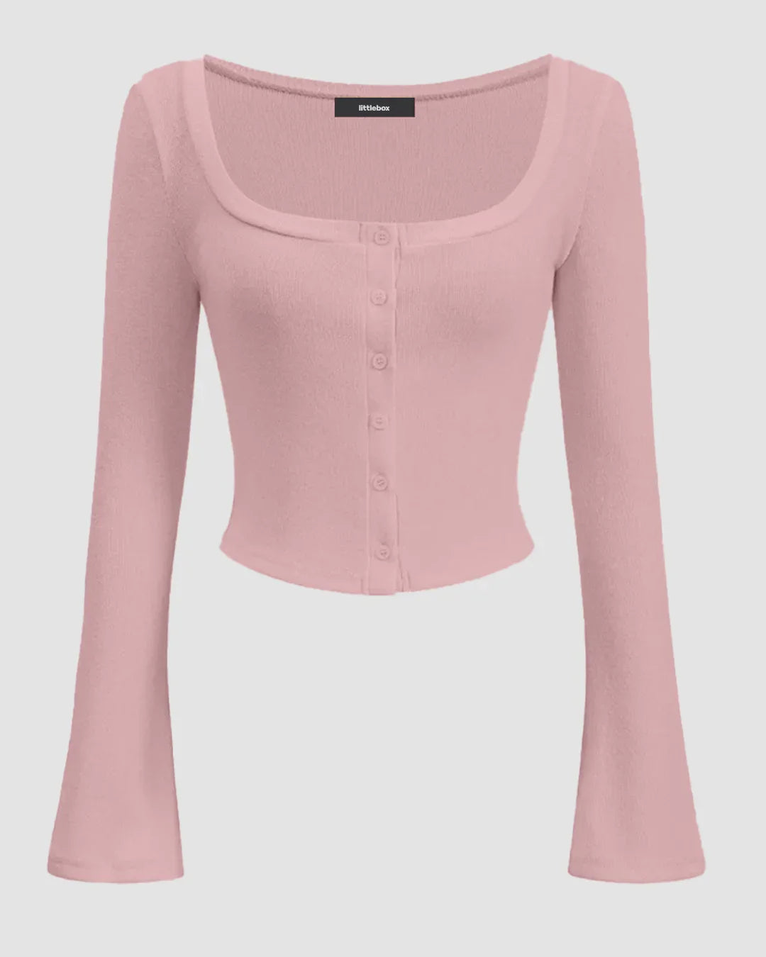 Square Neck Front Button Full Sleeve Top in Dusty Pink