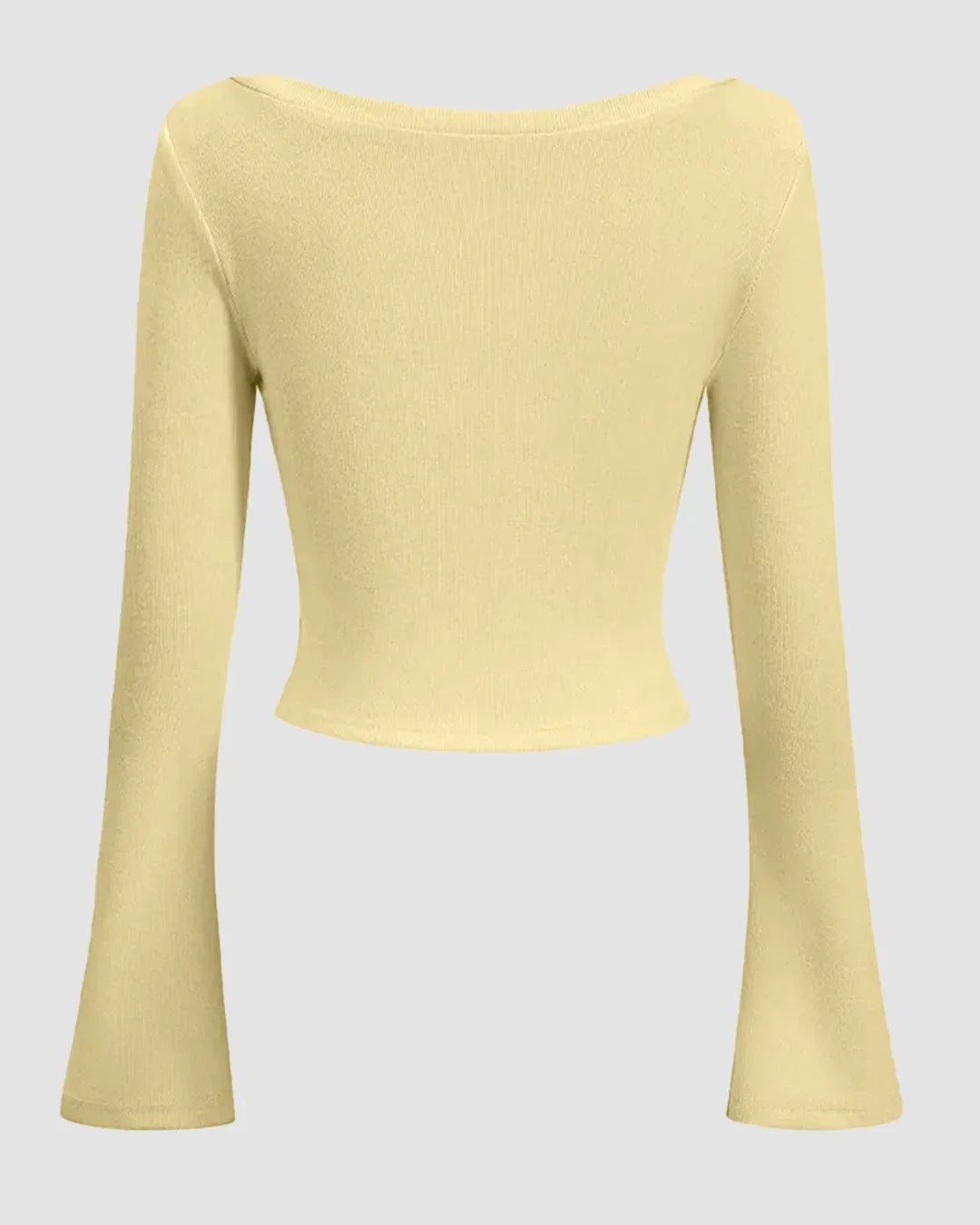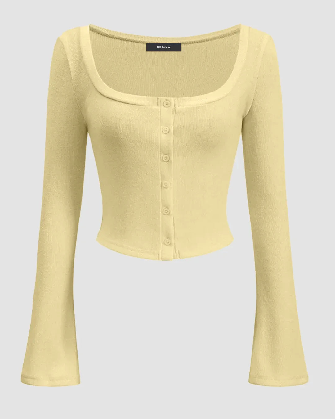 Square Neck Front Button Full Sleeve Top in Vanilla