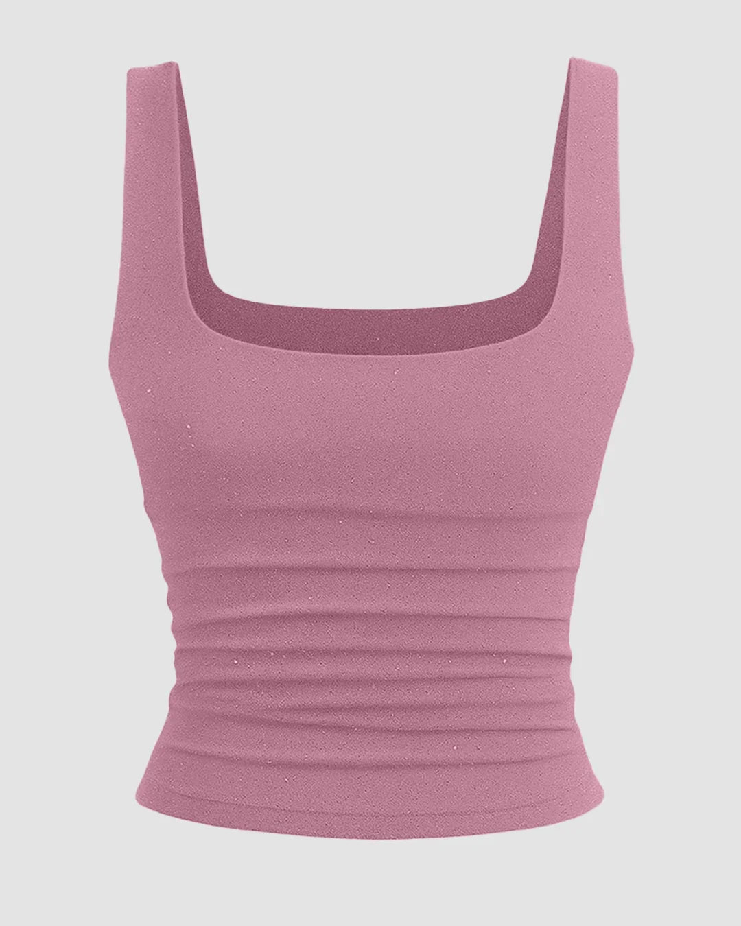 This pink colour top brings a clean, fitted silhouette with a subtle shimmer finish. Designed with a square neckline and wide straps, it frames the shoulders beautifully while keeping the look structured. The soft pink tone adds a fresh, feminine touch, and the lightly ruched waist enhances your natural shape. This pink colour top blends minimal design with a hint of sparkle, making it perfect for both casual and dressed-up styling.