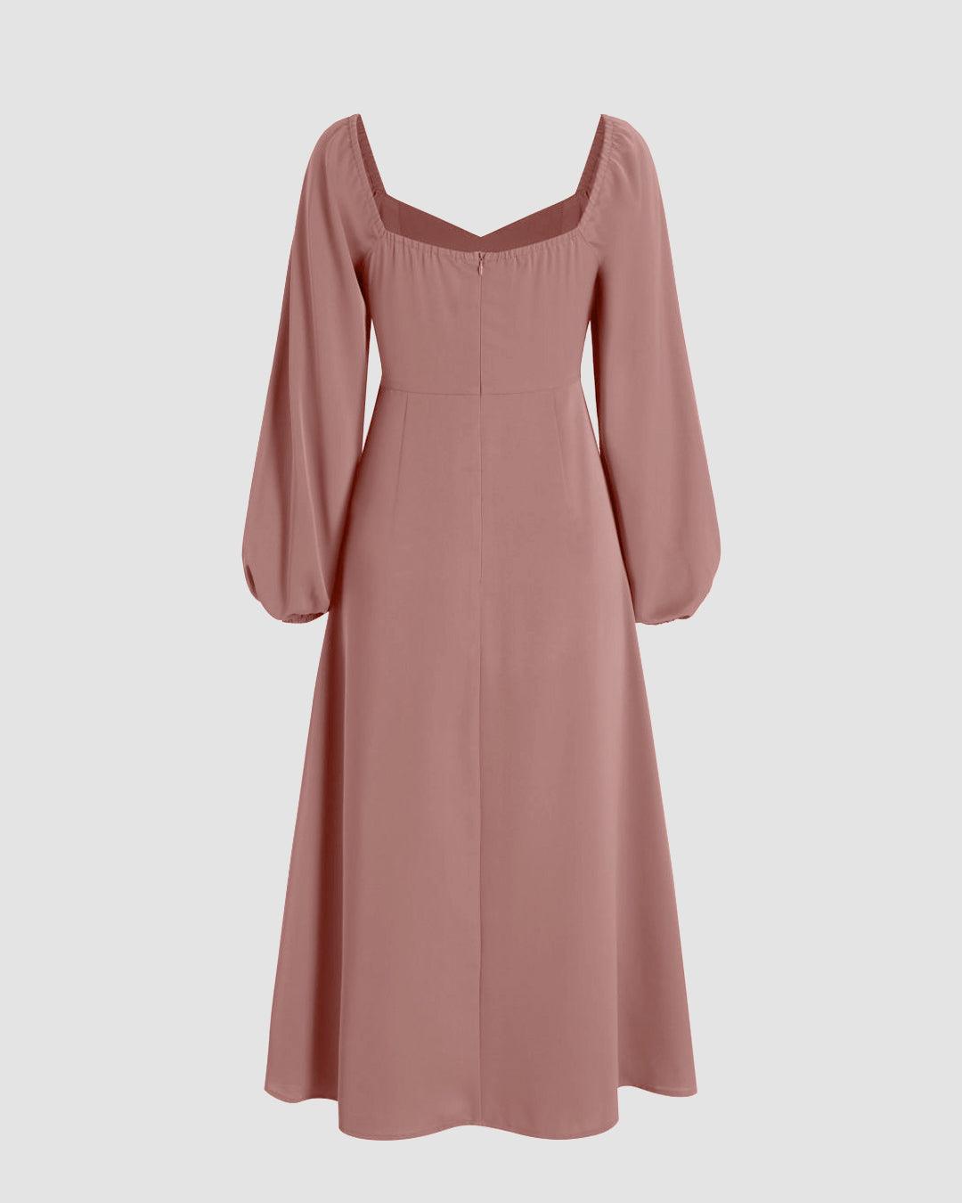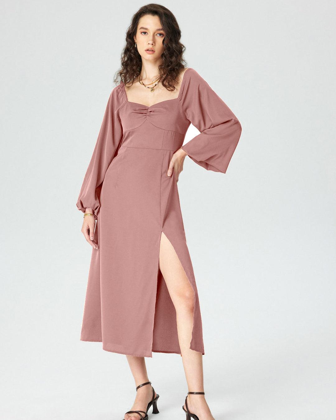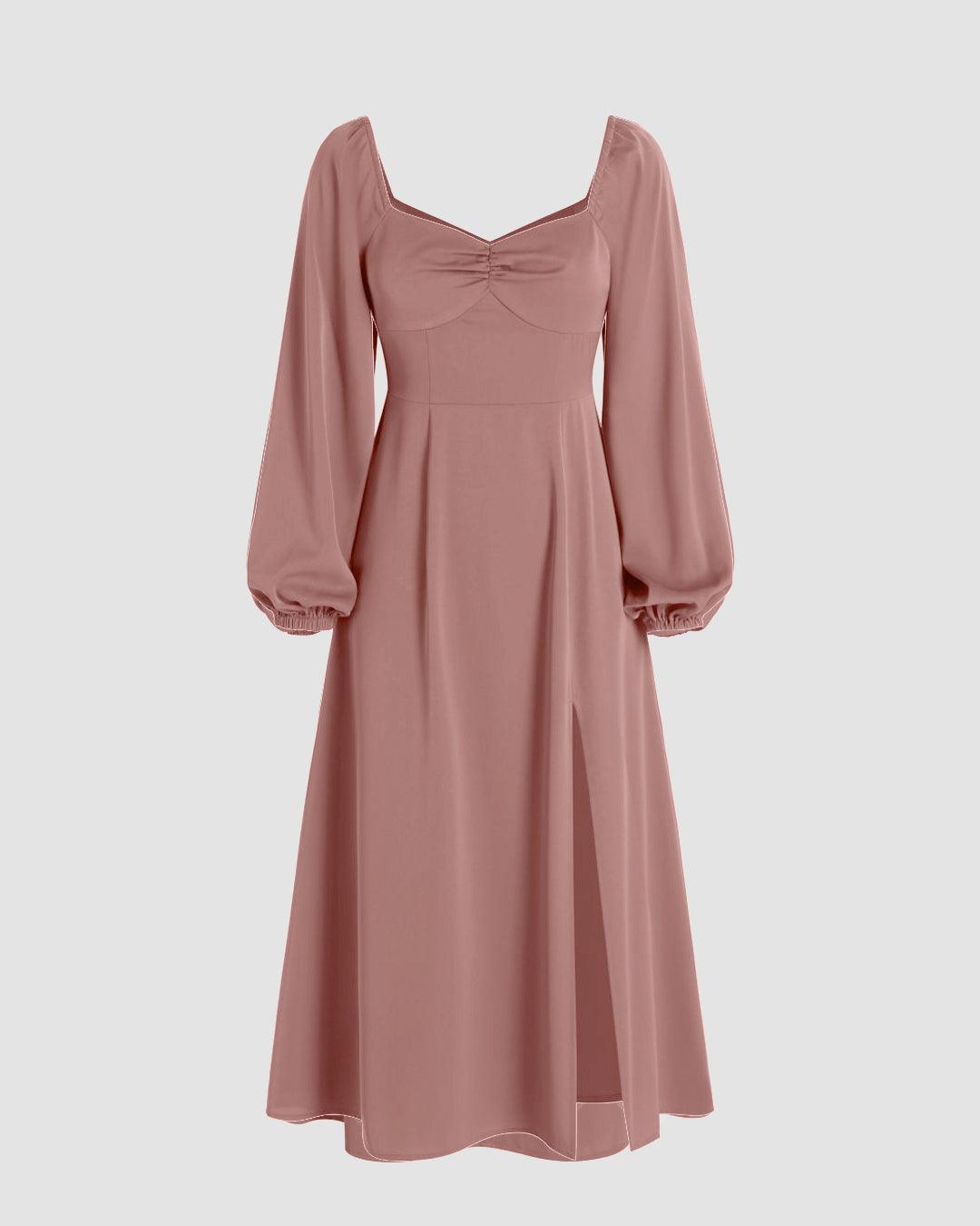Say hello to your new soft-girl staple. This sweetheart neckline dress features dreamy peasant sleeves, a fitted waist, and a side slit that adds just the right edge. The ruched bust detail gives extra shape without going over the top.